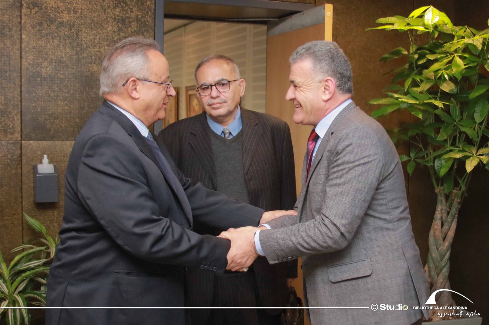 مدير المكتبة الوطنية د. نضال العياصرة يلتقي نظيره في مكتبة الإسكندرية احمد زايد.