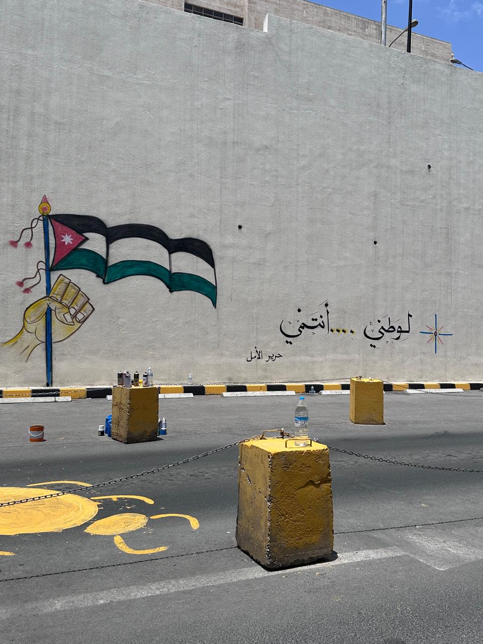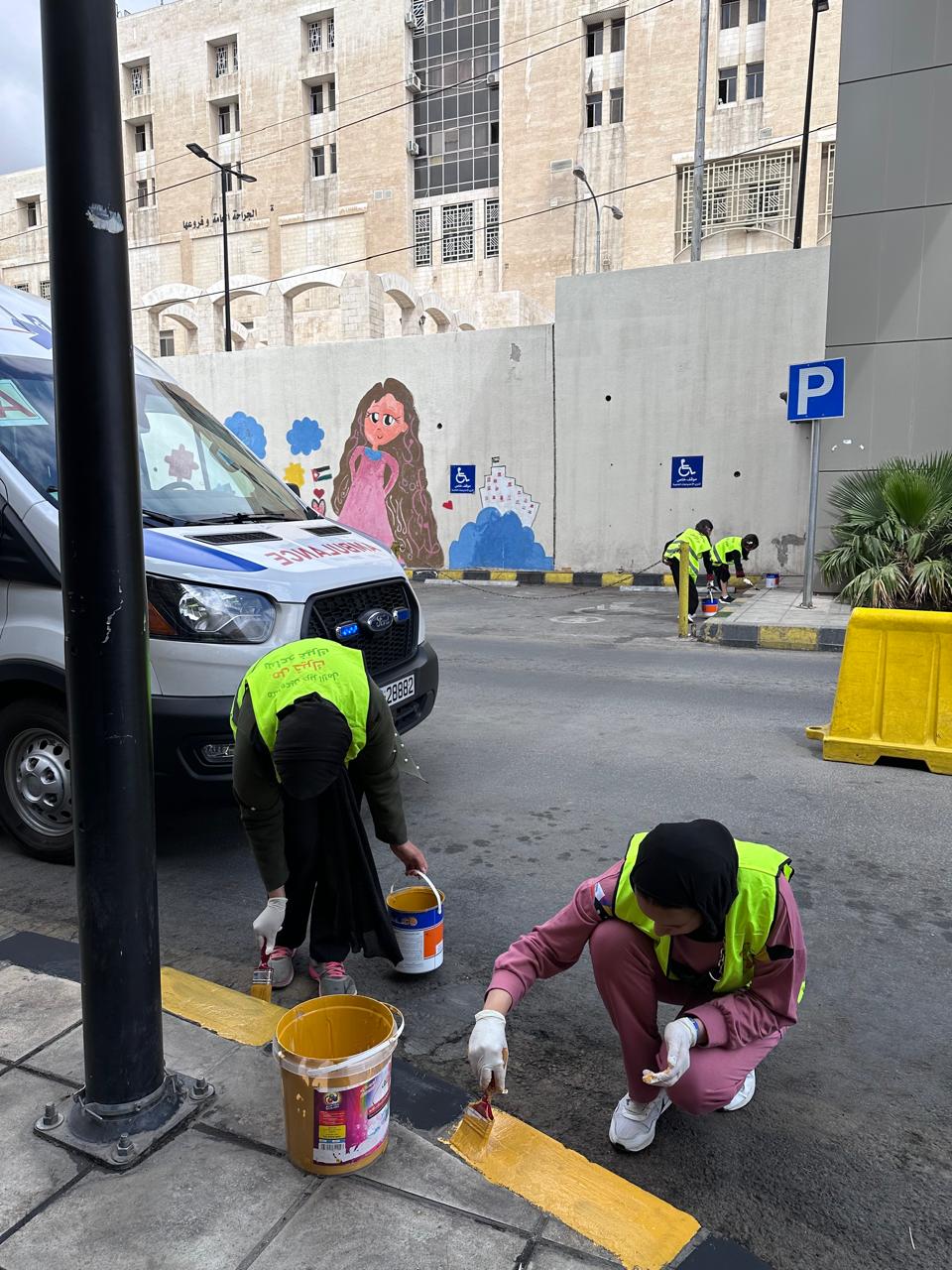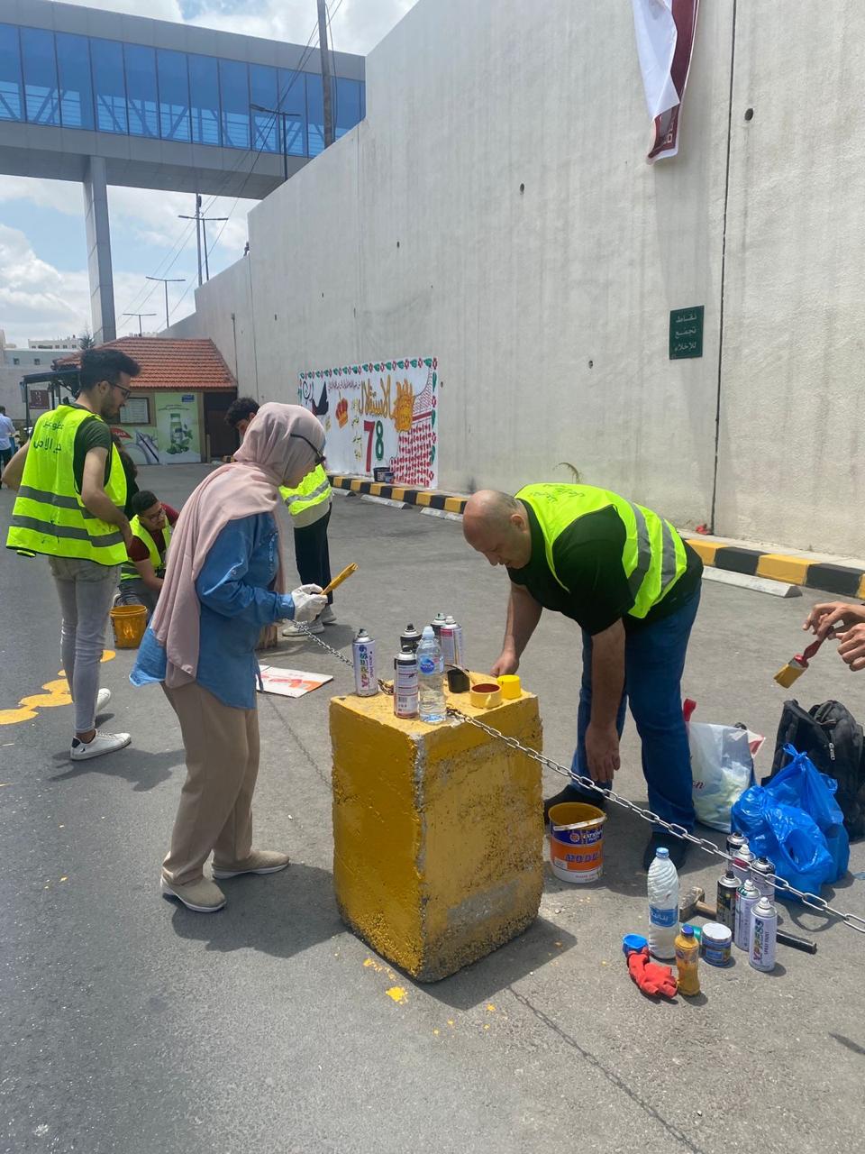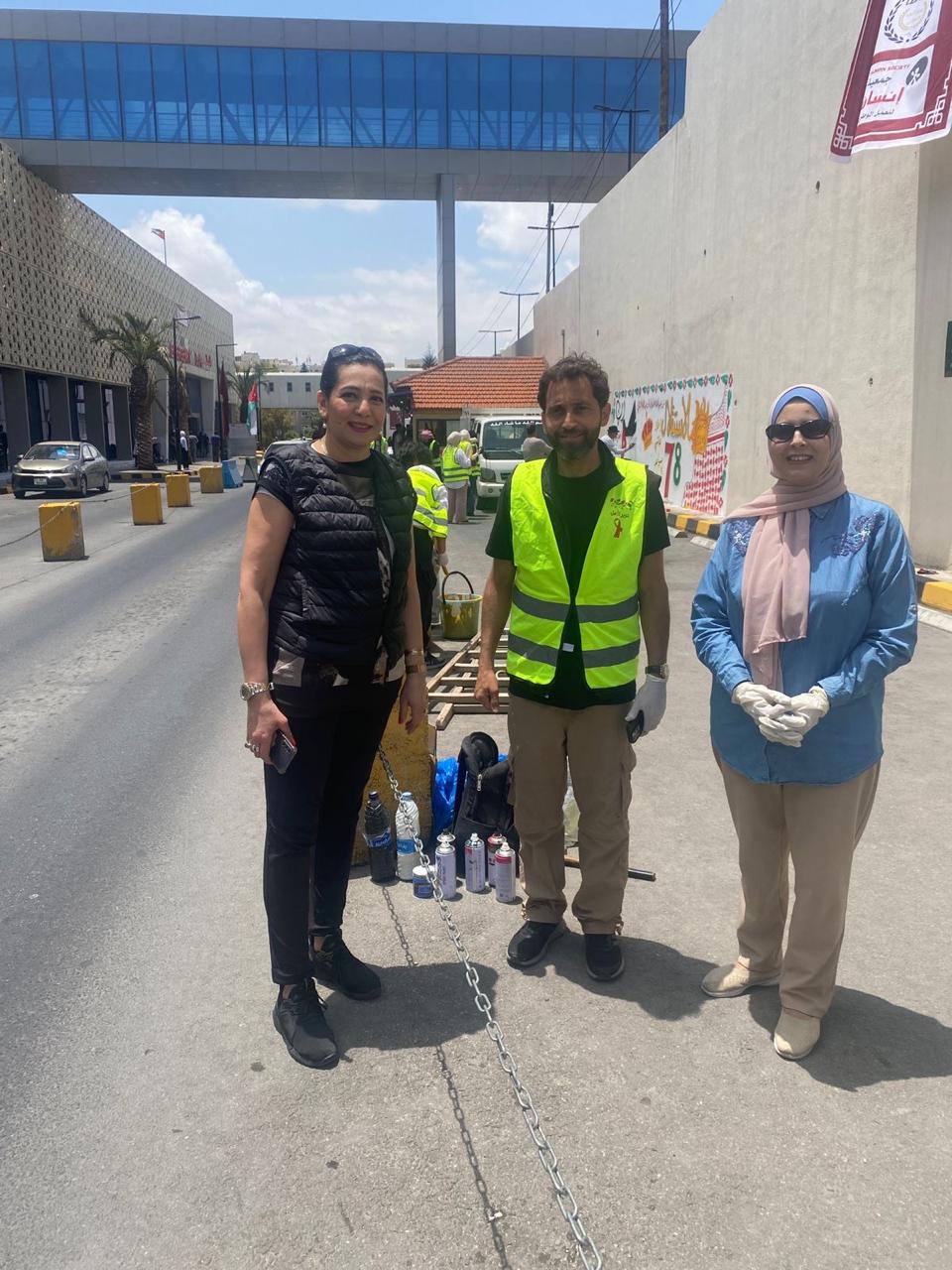 ولاضافة لمسة فنية تم إنجاز هاشمي بسواعد أردنية جداريات برسومات وطنية ودهان الأرصفة والسلات وتوزيع اعلام الاردن على الزائرين في مبنى مستشفى الإسعاف والطوارئ - مستشفيات البشير