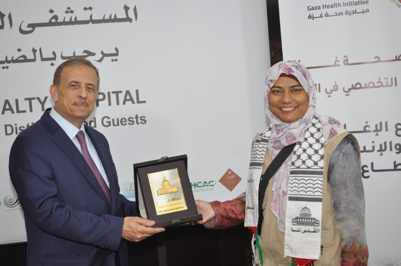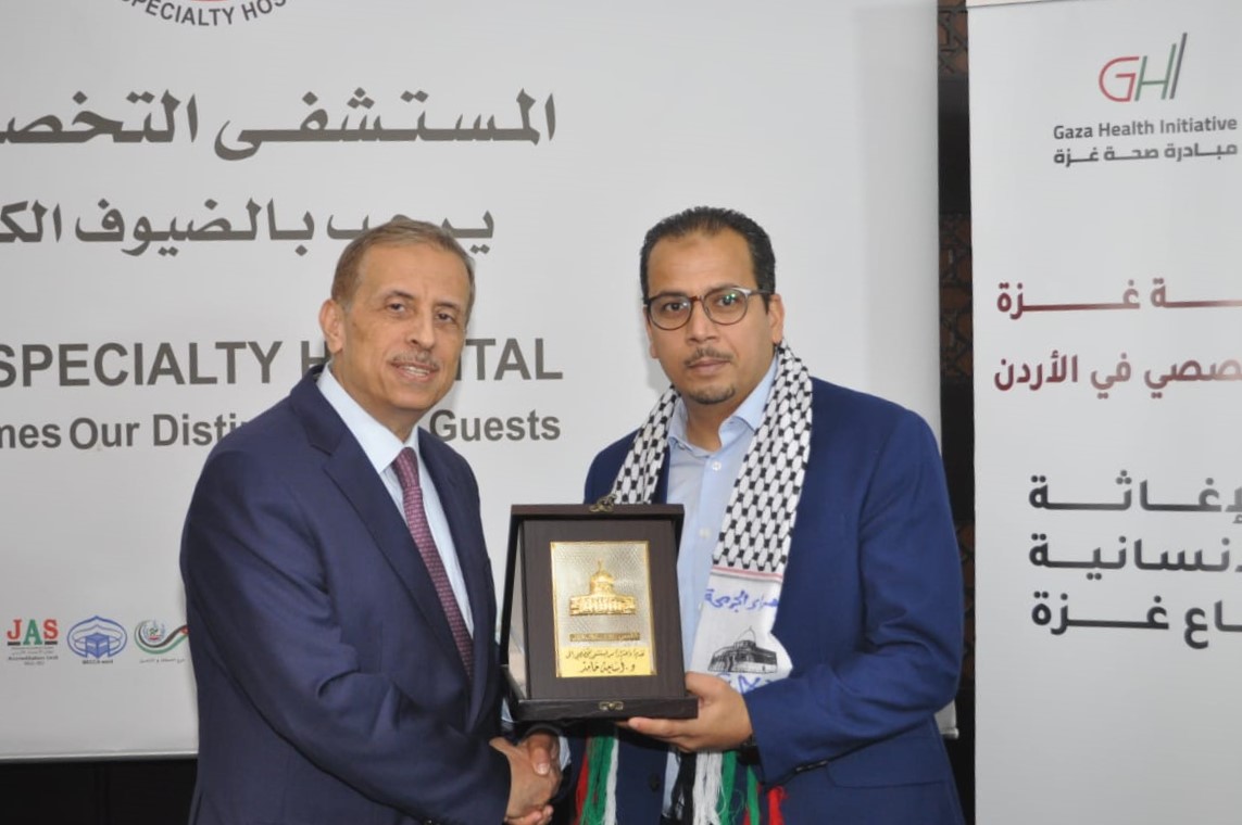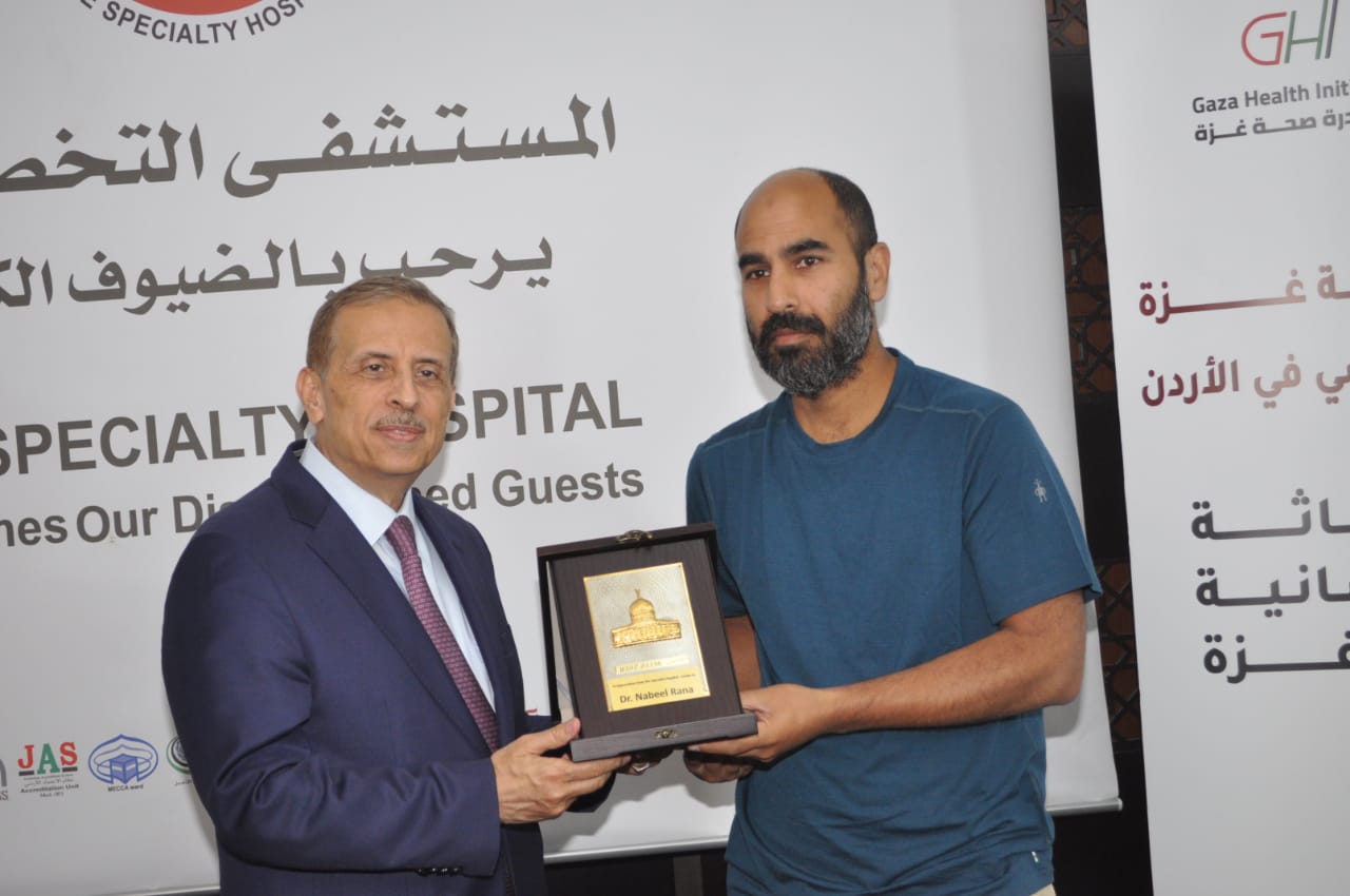قام الدكتور فوزي الحموري رئيس مبادرة صحة غزة في الأردن والشرق الأوسط ومدير المستشفى التخصصي بتكريم الفريق الطبي المكون من أطباء وممرضين من الأردن وسلطنة عمان ومن استراليا وكندا والولايات المتحدة الأمريكية الذي كان يعمل متطوعاً في مستشفيات شمال قطاع غزة منذ قرابة الشهر وبعد انتهاء مهمتهم في دعم وإسناد الأطباء هناك في إجراء العمليات للجرحى والمصابين المدنيين في القطاع، حيث جرى التكريم في المستشفى التخصصي يوم أمس الأربعاء وبحضور واسع من أعضاء المنظمات الصحية والانسانية والأطباء، والممرضين والإعلاميين.