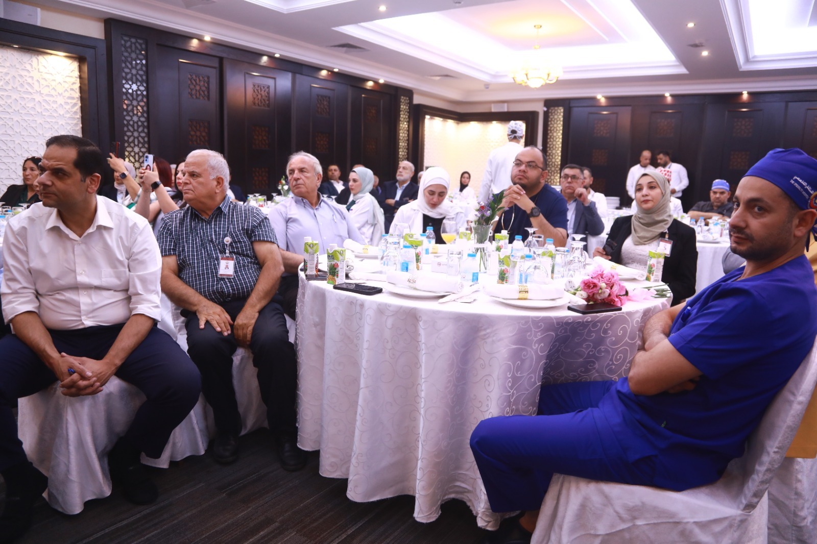 وقد ثمن الحموري في كلمته التي ألقاها بالمناسبة الجهود العظيمة التي قام بها الفريق واصفاً الأطباء والممرضين بالأبطال الذين جاؤوا من مختلف دول العالم واصفاً أرض الأردن بالعضد الذي لا يميل عن إسناد أشقائه المكلومين على أرض فلسطين لا سيما وأن أصبح الأردن أرض التئام وانطلاق للمنظمات الانسانية الدولية والفرق الطبية التي تهبّ لمد يد العون للأشقاء في قطاع غزة، موضحاً بأن ما تقوم به الفرق الطبية في إنقاذ مئات الأرواح من المدنيين العزل، ووضعوا أرواحهم على أكفهم وذهبوا الى أرض غزة التي تتعرض لعدوان غاشم من جيش لا يحترم قانونا ولا معاهدات ولا أعراف ويقوم بمهاجمة الأماكن التي يفترض أن تكون آمنة مثل المستشفيات والملاجئ والمدارس والجامعات والمساجد والكنائس لا بل يستهدف المدارس والملاجئ التابعة للأونروا.