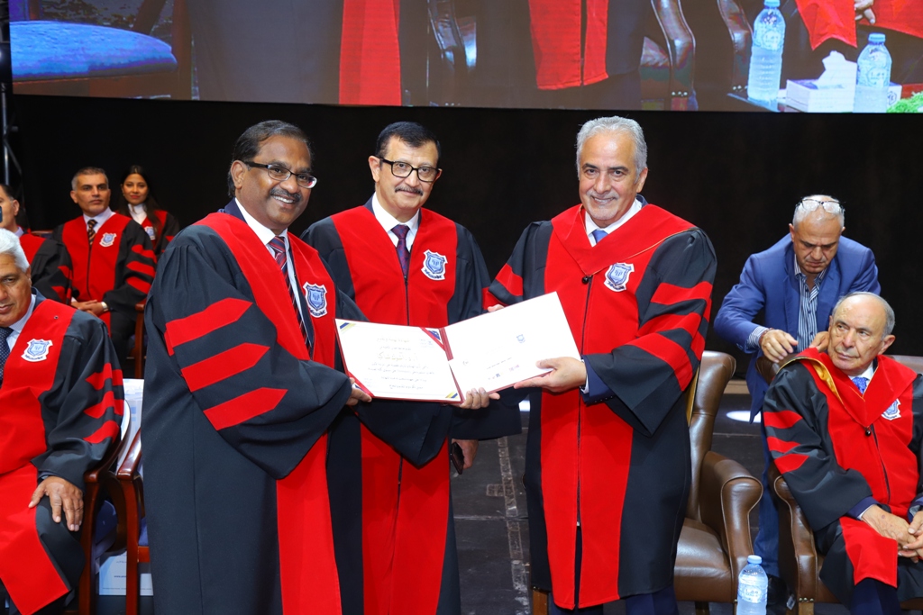 رعى الاستاذ الدكتور ساري حمدان رئيس جامعة عمان الأهلية مساء أمس 30-9-2024 على مسرح الأرينا احتفال الجامعة بتخريج طلبتها للفصل الصيفي 2023-2024 من فوج اليوبيل الفضي ، بحضور عطوفة السيد عمر الحوراني نائب رئيس هيئة المديرين للجامعة ، وعدد من أعضاء مجلس الأمناء ، وبحضور أ.د. أنس السعود نائب رئيس الجامعة لشؤون العلاقات الدولية والجودة ، ومساعدي ومستشاري الرئيس ، والسادة العمداء وأعضاء الهيئة التدريسية وعدد من أعضاء الهيئة الإدارية وحشد كبير من ذوي الطلبة الخريجين والمدعوين .