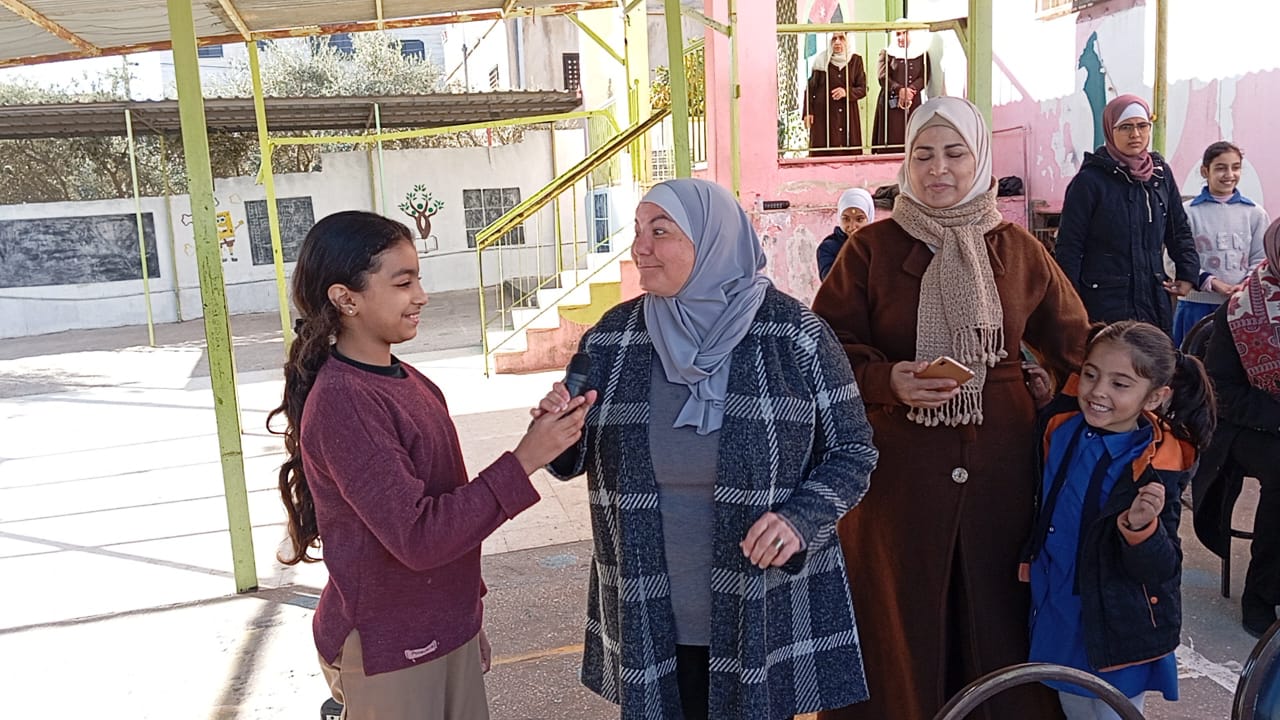 وبعد ذلك جال فريق المنتدى برفقة المديرة ابو جوس في عدد من مرافق المدرسة وخصوصا المكتبة وتم الاطلاع على الكتب الموجودة فيها والتي تناسب المرحلة الأساسية للطلاب.