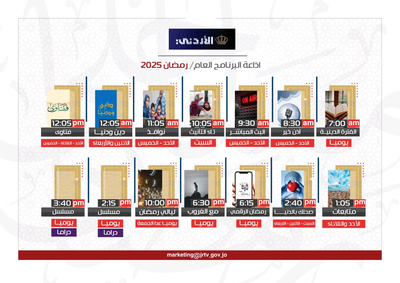 قرابة 70 برنامجا في الخريطة البرامجية لمؤسسة الإذاعة والتلفزيون الأردنية في شهر رمضان المبار