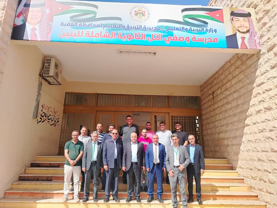 مدير التربية والتعليم لمحافظة العقبة الدكتور عبدالوهاب الحجاج، والمفوض المالي والإداري لمنطقة العقبة الإقتصادية الخاصة علي العجارمة، ومدير مديرية العمل عاطف الحمران، على مرافق المدرسة وسير العملية التدريسية والتخصصات المهنية فيها.