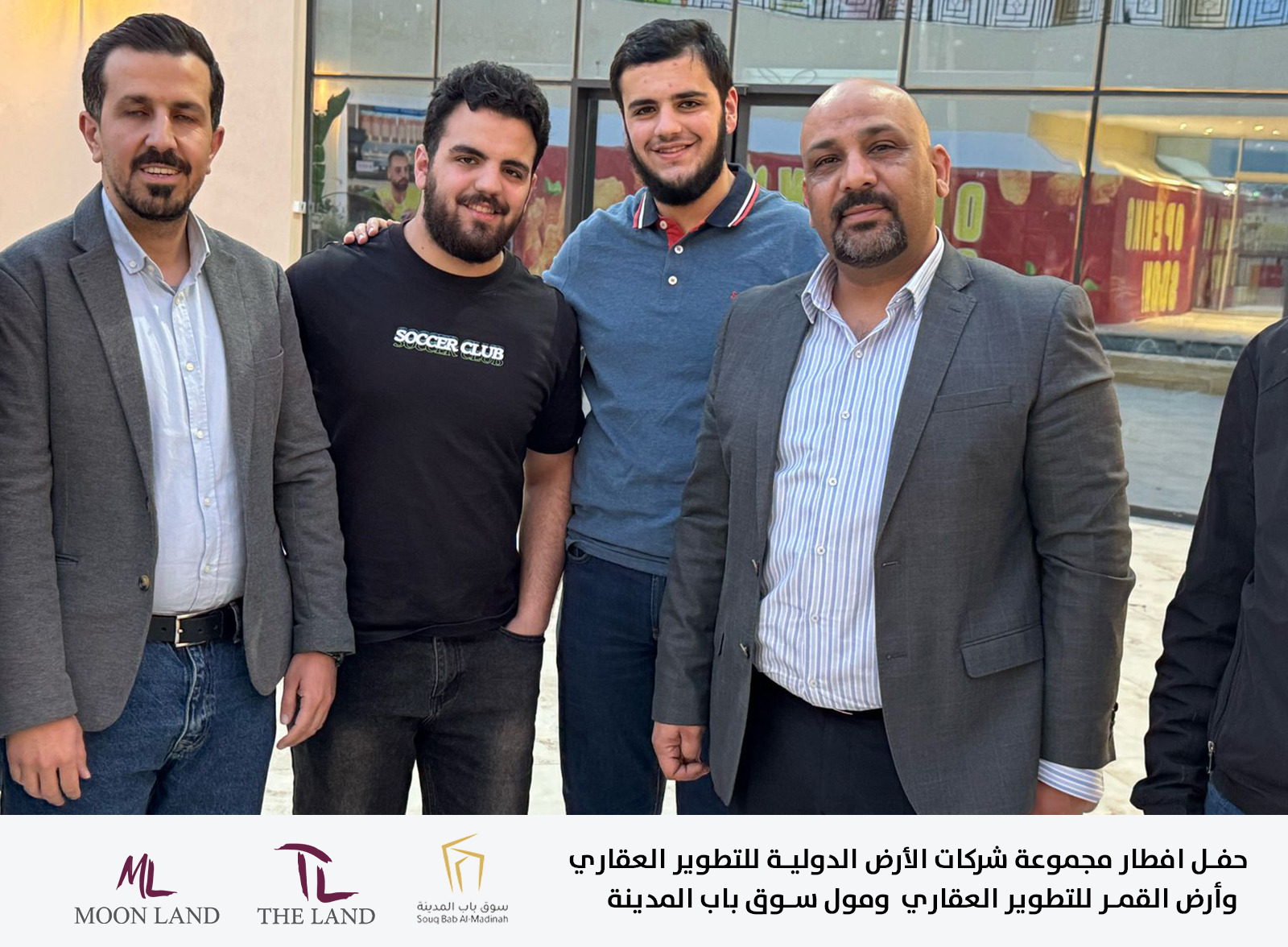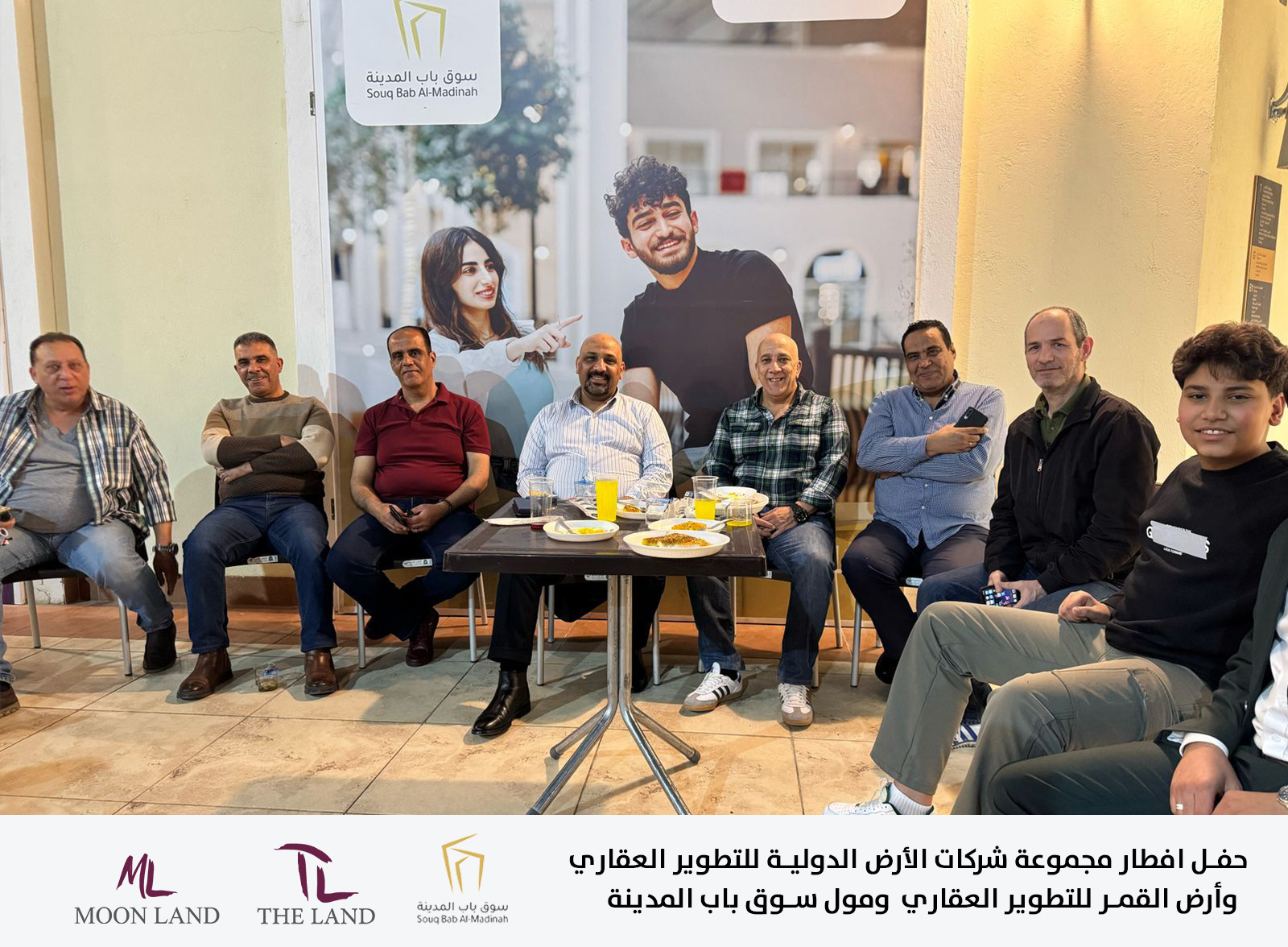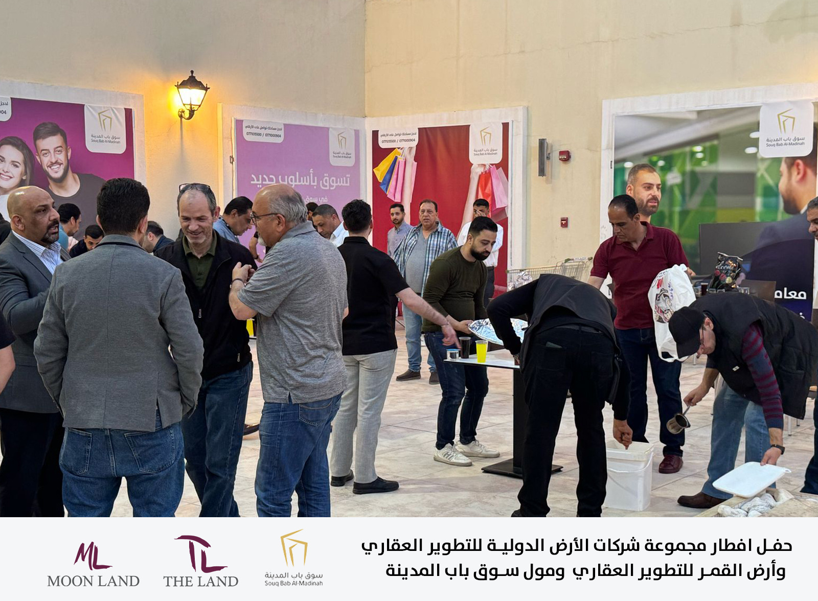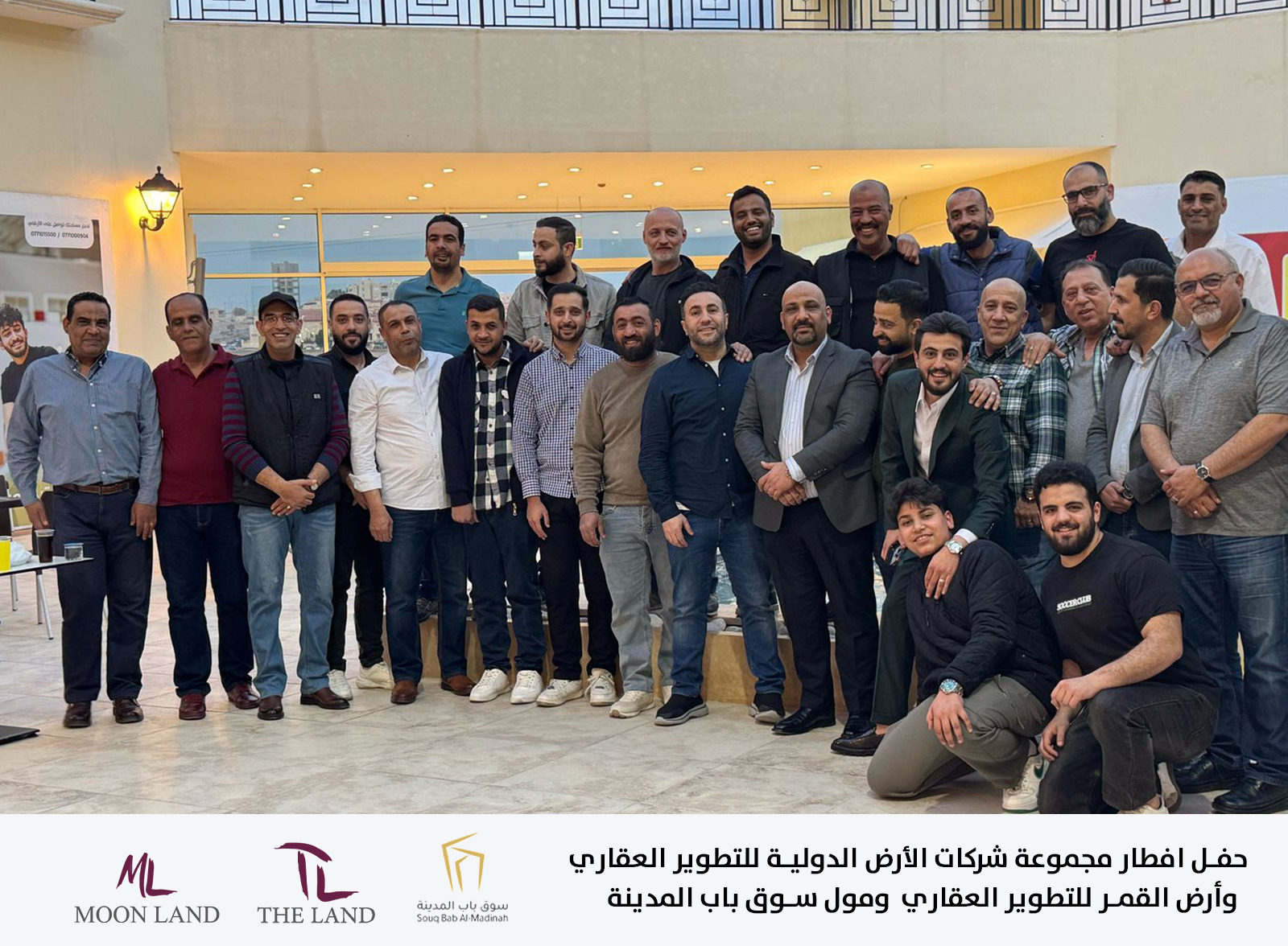 أقامت مجموعة شركات الأرض الدولية للتطوير العقاري، وشركة أرض القمر للتطوير العقاري، ومول سوق باب المدينة حفل إفطار رمضاني، وذلك بدعوة كريمة من السيد عبدالله الفاعوري، المدير العام للمجموعة، وبحضور نخبة من القيادات التنفيذية والهندسية والأمنية في الشركات.
