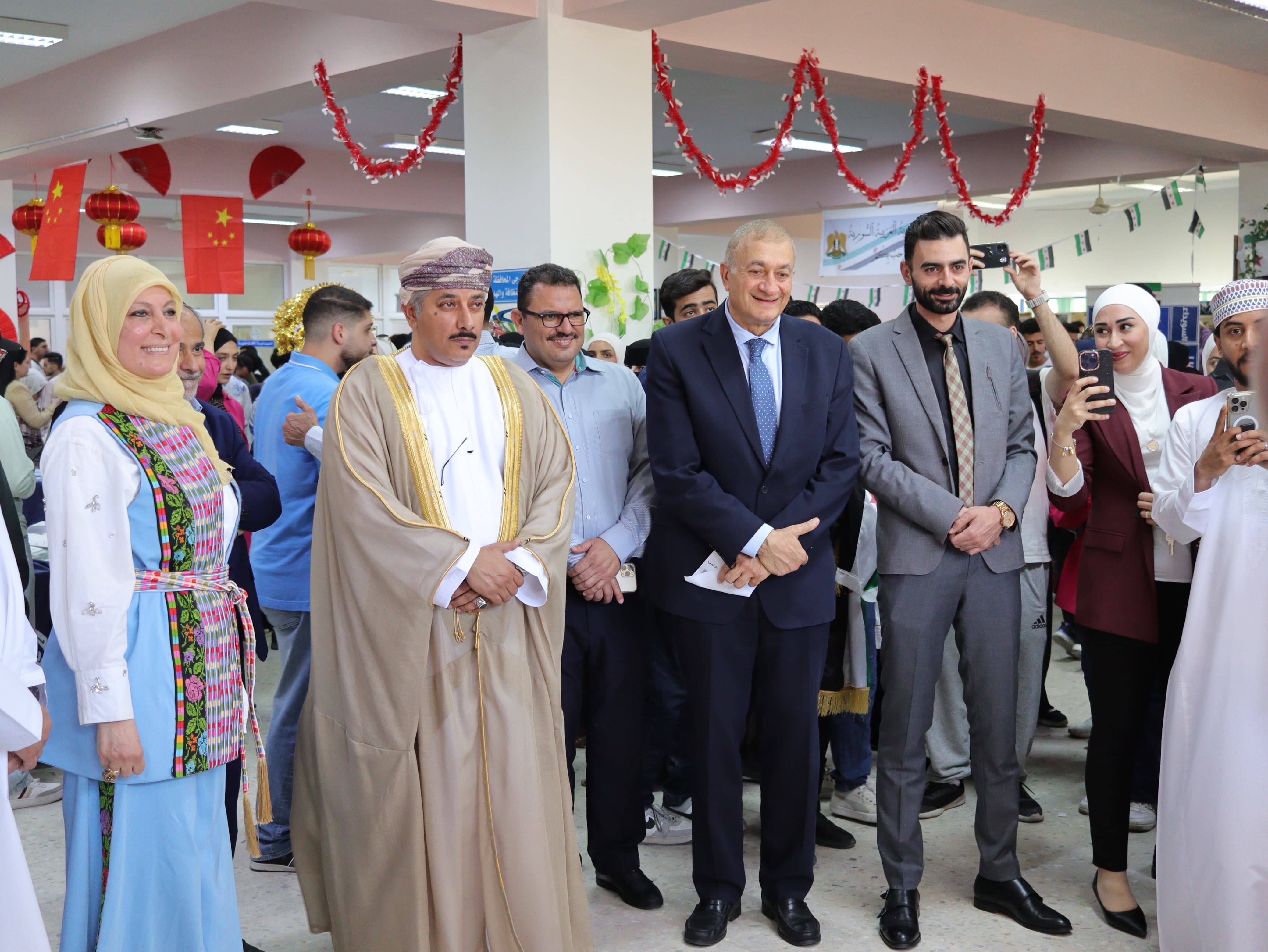 وجال سعادة السفير العجيلي في أروقة المعرض، حيث استمع إلى شرح من مديرة دائرة المكتبة ومصادر المعلومات الدكتورة سناء السيد، والطلبة المشاركين حول ما تقدمه كل دولة من محتوى ثقافي وتراثي، مبديًا إعجابه بالتنظيم المتميز والتنوع الثقافي الذي يعكس روح التعاون بين الطلبة العرب داخل الجامعة