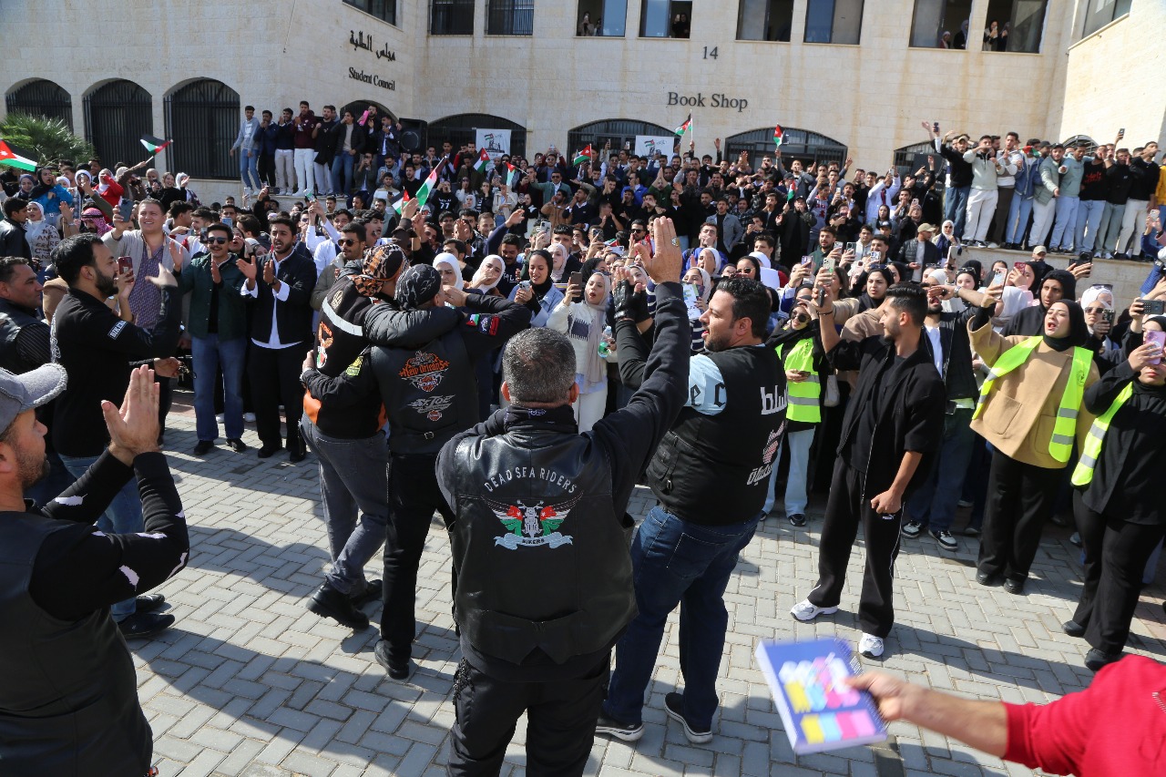 وتخلل الحفل فقرات فنية وطنية قدمتها موسيقات الأمن العام وفرقة وكورال الجامعة وقصائد شعرية ومسيرة لشبكة الدراجون العرب ودراجون الأردن بتنسيق مع المعهد المروري وسط أجواء احتفالية وطنية جسدت القيم الوطنية الأردنية السامية ومشاعر الولاء والانتماء للوطن للعرش الهاشمي المفدى بقيادة جلالة الملك عبدالله الثاني وولي عهده الأمين.