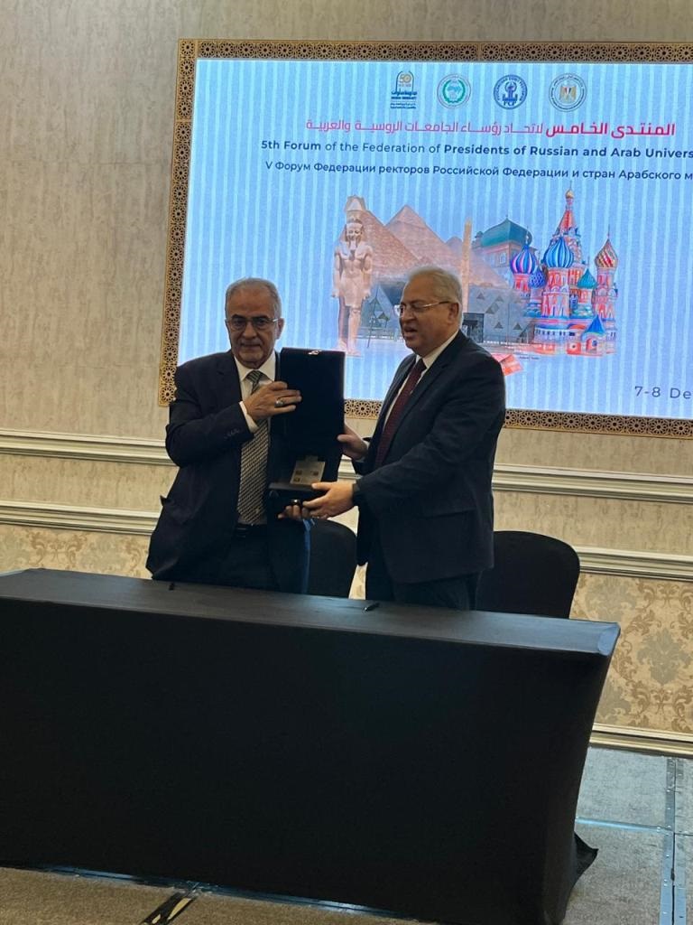 وشهدت مشاركة الجامعة توقيع عدد من اتفاقيات التعاون الدولي مع جامعات عربية وروسية، منها: جامعة العاصمة (حلوان سابقًا)، وجامعة ماري الحكومية في روسيا، وجامعة الشيشان الحكومية، وتشمل الاتفاقيات مجالات تبادل الطلبة وأعضاء هيئة التدريس، والبرامج البحثية المشتركة، وتطوير البرامج الأكاديمية.