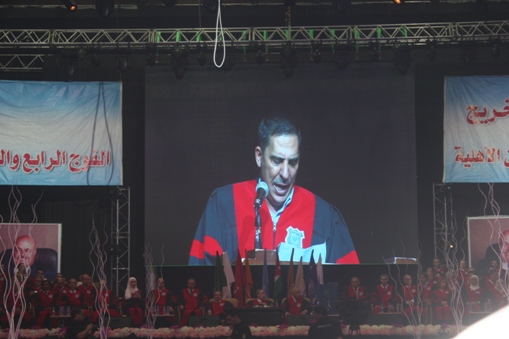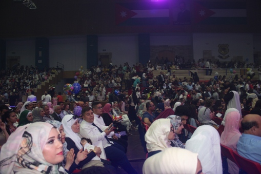 وقد استهل الحفل بالسلام الملكي وتلاوة عطرة من الذكر الحكيم ثم القى عميد شؤون الطلبة الدكتور ماجد عسيلة كلمة في الحفل رحب فيها براعي الحفل وبمسؤولي الجامعة واسرتها وبالحضور مؤكدا فيها على انجازات الجامعة النوعية وتحقيقها لمراتب متقدمة على صعيد المقاييس الاكاديمية وعلى صعيد المسابقات الجامعية محليا وعربيا وحتى عالميا .. الى جانب قيام الجامعة بفعالية بتادية رسالتها التعليمية والبحثية وخدمة المجتمع المحلي والمساهمة في عملية التنمية .