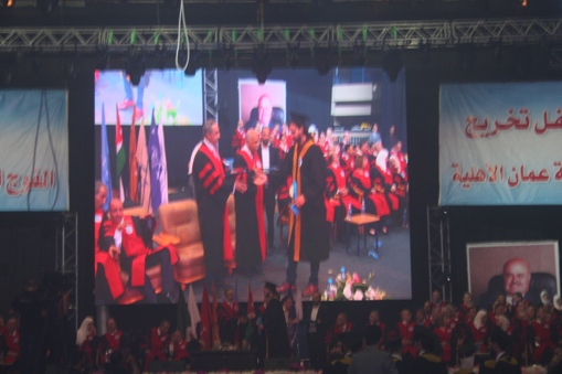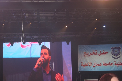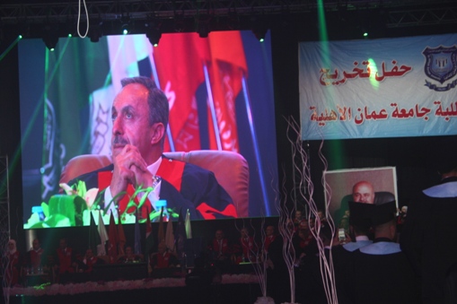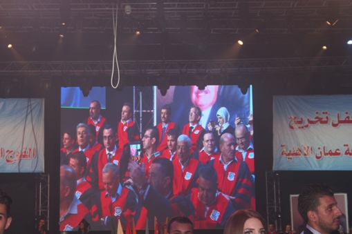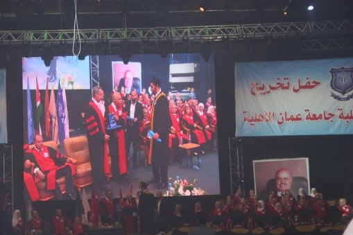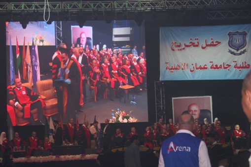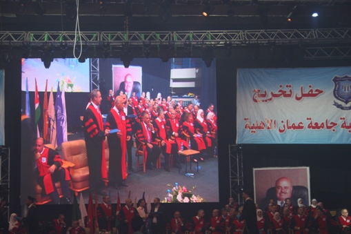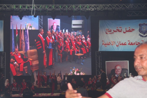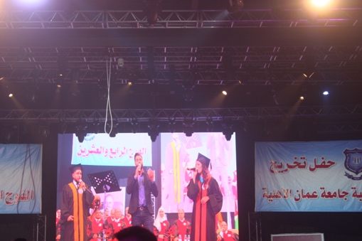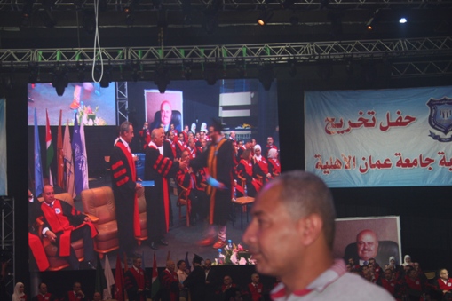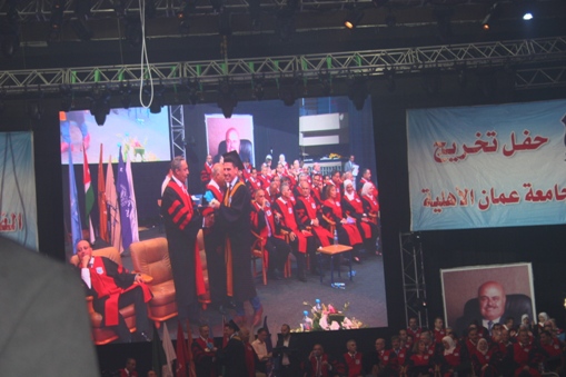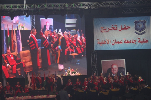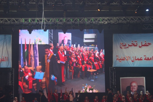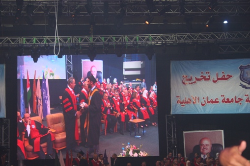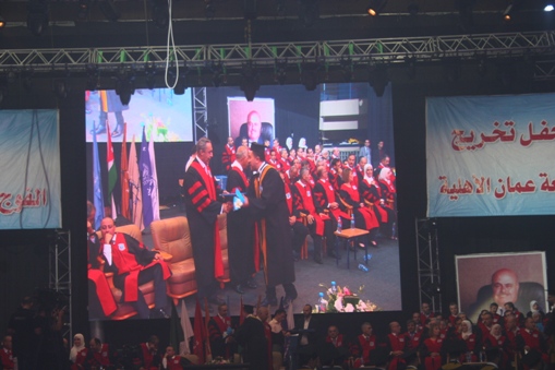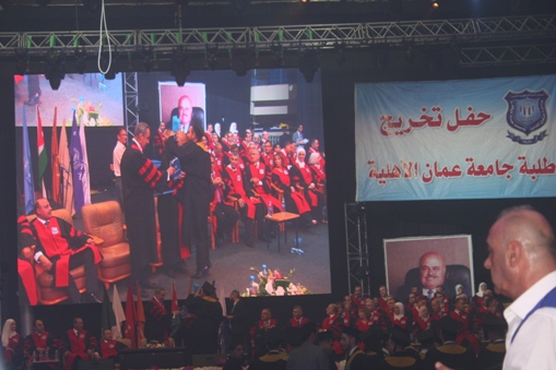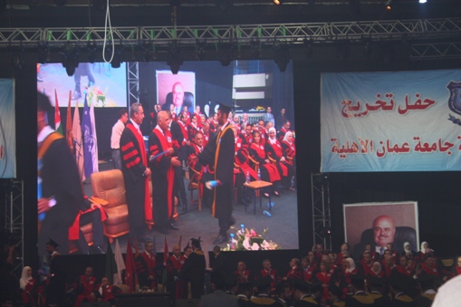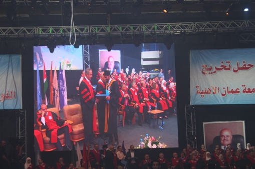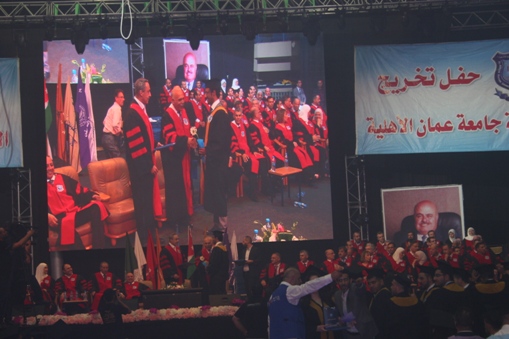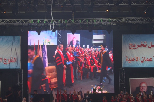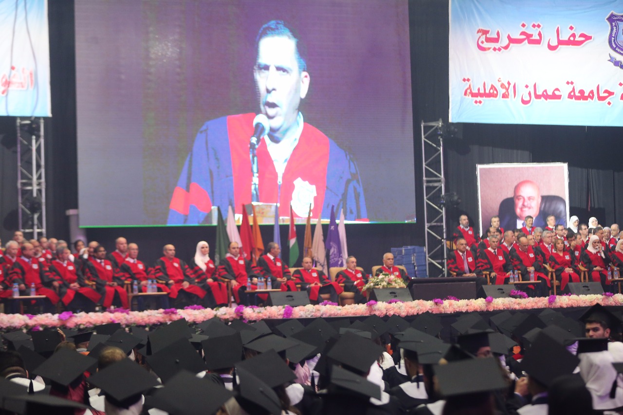 برعاية دولة عبدالكريم الكباريتي رئيس مجلس امناء جامعة عمان الاهلية احتفلت الجامعة مساء امس بصالة "مجمع الارينا " بتخريج الفوج الرابع والعشرين من طلبتها للفصل الدراسي الثاني 2016-2017 بحضور الدكتور ماهر الحوراني رئيس هيئة المديرين للجامعة والسيد عمر الحوراني نائب رئيس هيئة المديرين و رئيس الجامعة الدكتور صادق حامد والعمداء واعضاء الهيئات التدريسية والادارية وحشد كبير من المدعوين وذوي الخريجين .