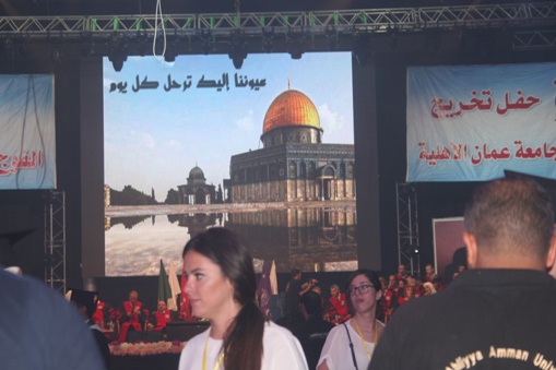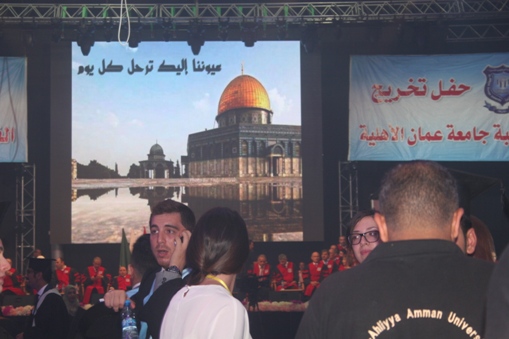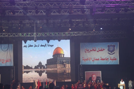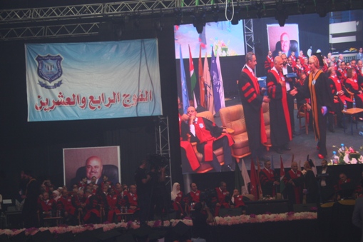 وذكر ان الجامعة بهيئاتها التدريسية والادارية والطلابية تعلن تضامنها مع اهلنا في فلسطين في مواجهة الاعتداءات الاسرائيلية على القدس والمقدسات مشيدا بدور الاردن الريادي في حماية المقدسات ومنها "المسجد الاقصى " والتصدي لمحاولات تدنيسها واغلاقها امام المصلين . وهنأ في كلمته الطلبة الخريجين وذويهم بهذه المناسبة متمنيا لهم التوفيق في حياتهم العملية .
