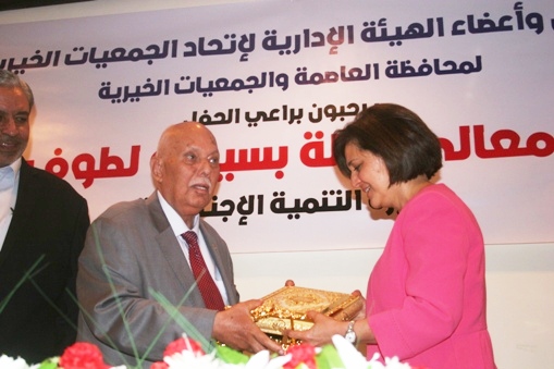 وفي ختام الحفل الذي اداره المهندس ابراهيم العساف، كرم الحاج البسطامي وزيرة التنمية الاجتماعية.