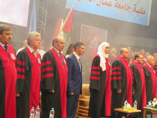 رعى وزير التعليم العالي والبحث العلمي الاستاذ الدكتور عادل الطويسي احتفال جامعة عمان الاهلية بتخريج الفوج الرابع والعشرون من طلبتها للفصل الدراسي الصيفي من العام الجامعي 2016-2017 وذلك على مسرح الارينا بالجامعة مساء يوم السبت 23-9-2017 بحضور رئيس هيئة المديرين الدكتور ماهر الحوراني ورئيس الجامعة أ.د.صادق حامد والعمداء والاساتذة وحشد من المدعويين والخريجين وذويهم .