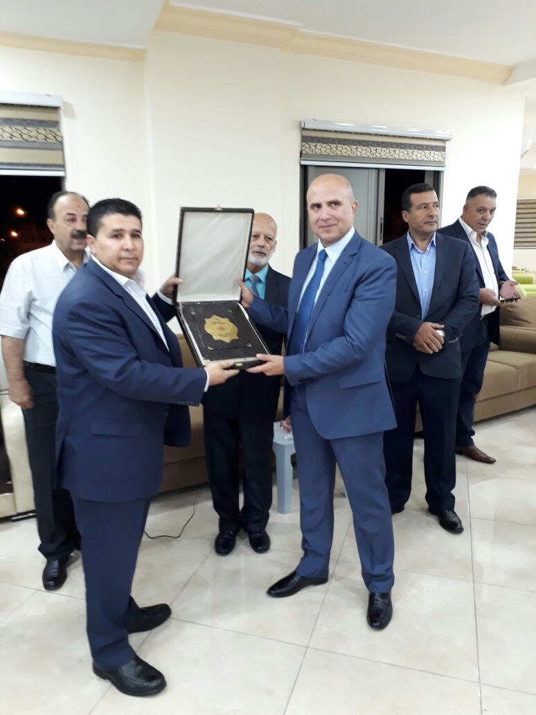 وفي نهاية الحفل قدم عمداء الكليات في جامعة العقبة للتكنولوجيا درعا تقديريا لعطوفته كما قدم رئيس ديوان ابناء الشمال درعا تقديريا للشحاتيت على جهوده .