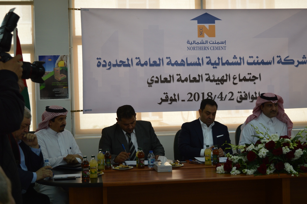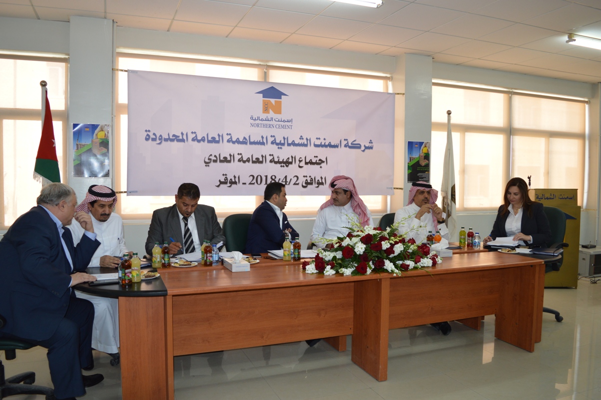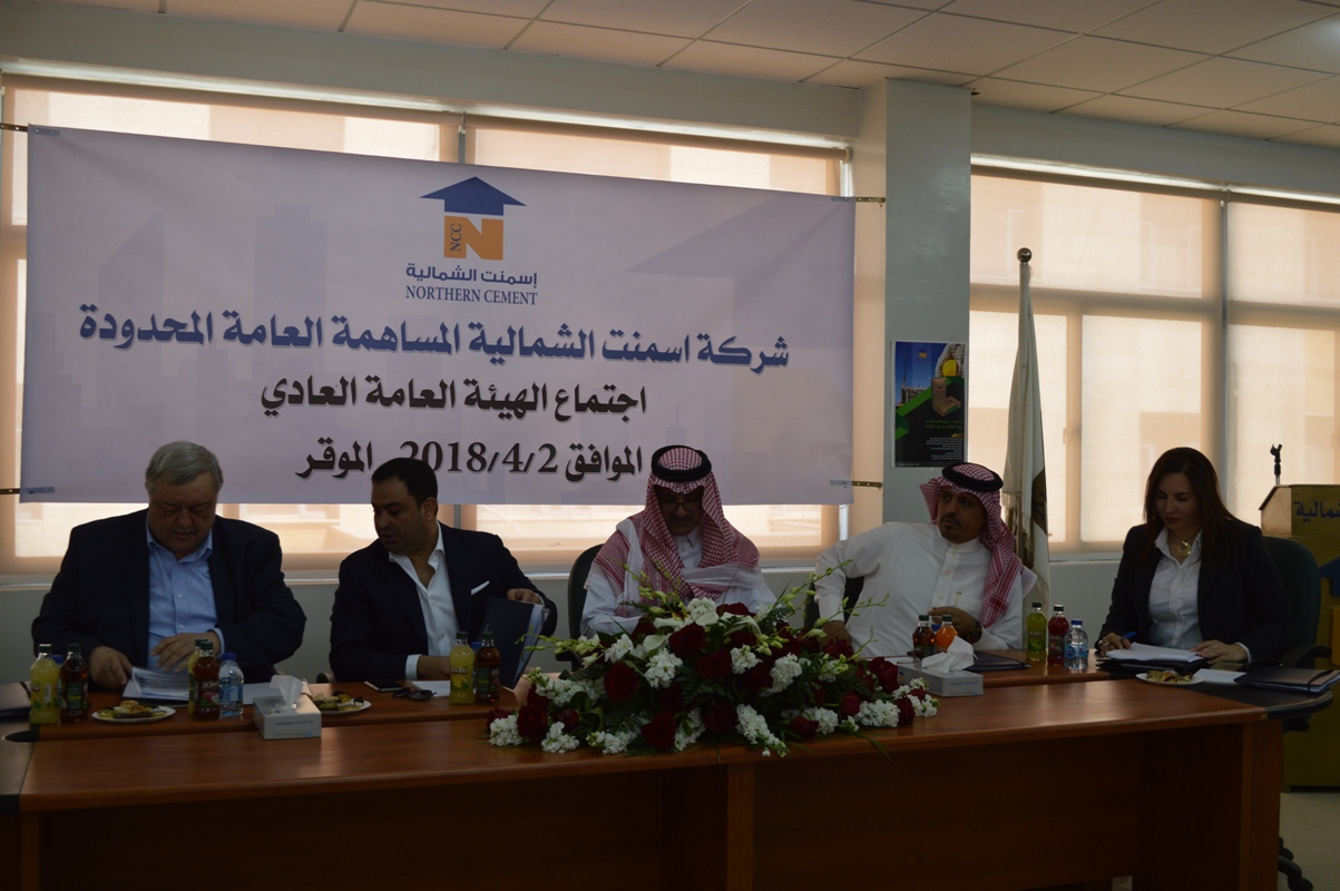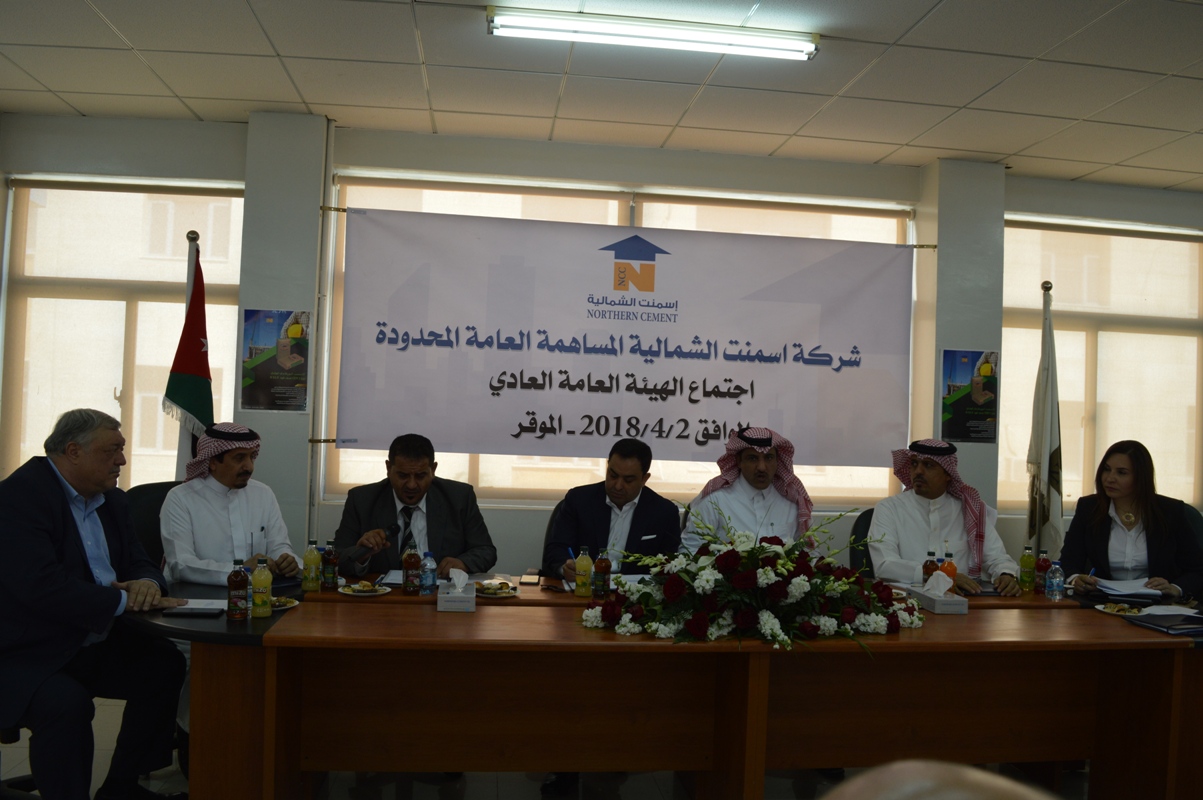 وعقدت الهيئة العامة لشركة اسمنت الشمال اجتماعها العادي اليوم في مقر الشركة بالموقر برئاسة السيد فارس القطارنة نائب رئيس مجلس الادارة وحضور السيد باسم ظبيان والمدير العام السيد سليمان ملحس وكبار المساهمين من الاردن والسعودية.. حيث جرى خلال الاجتماع تلاوة تقرير مدقق الحسابات ومناقشة حسابات الشركة وميزانيتها العمومية عن السنة المالية المنتهية في 31/12/2017 كما تم استعراض انجازات وخطط الشركة والمصادقة على البيانات الختامية كا جرى ابراء ذمة رئيس وأعضاء مجلس الادارة وانتخاب مدقق حسابات للشركة للسنة المالية 2018 وتفويض مجلس الادارة بتجديد اتعابه، وانتخاب مجلس ادارة جديد للشركة لاربع سنوات قادمة.