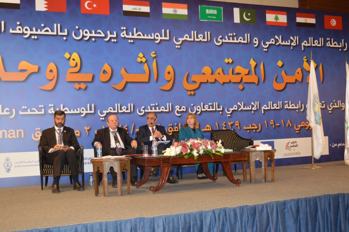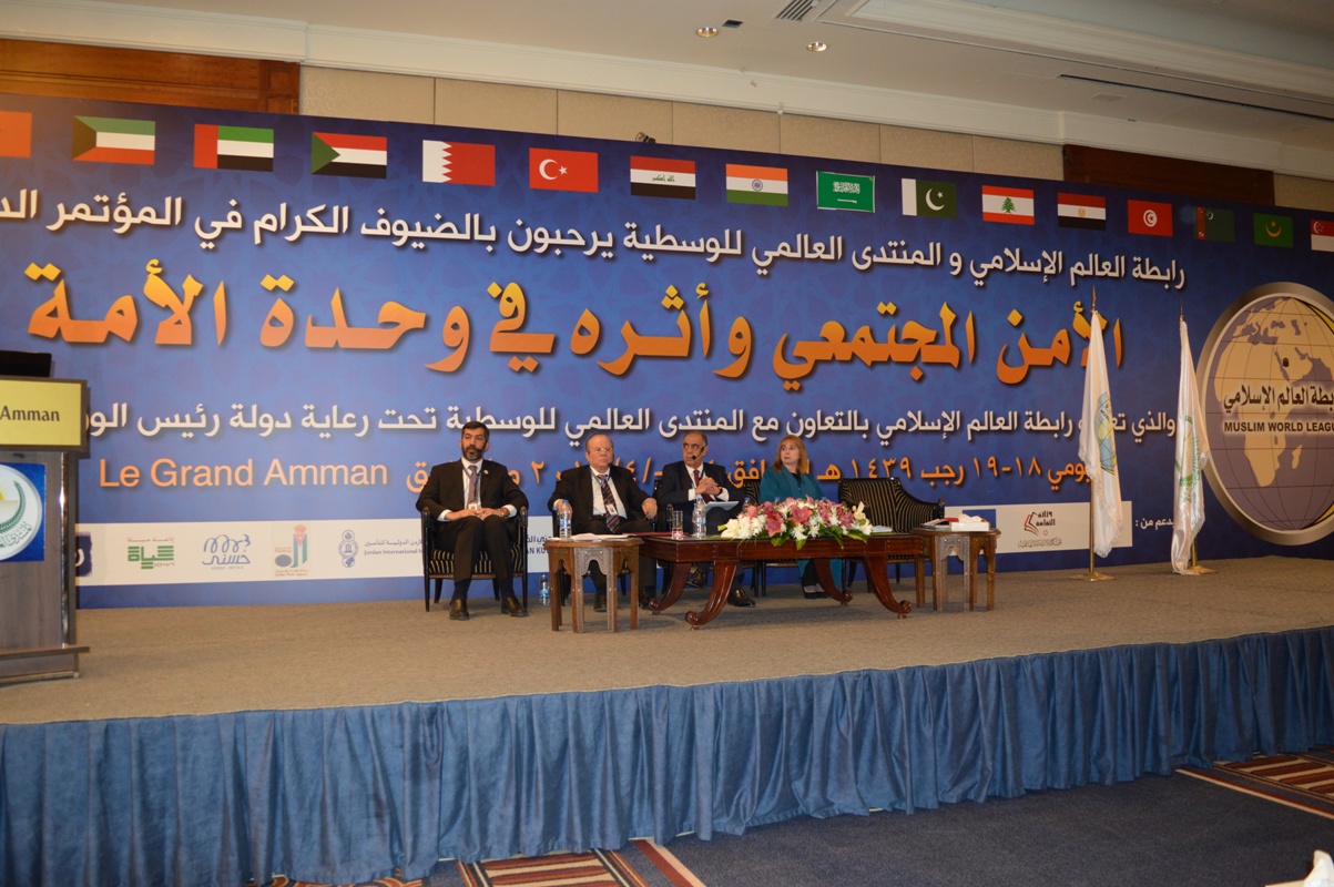 فبعون الله وتوفيقه؛ اختُتم مؤتمر "الأمن المجتمعي وأثره في وحدة الأمة" الذي نظمته رابطة العالم الإسلامي بالتعاون مع المنتدى العالمي للوسطية، تحت رعاية كريمة من دولة الدكتور هاني بن فوزي الملقي، رئيس الوزراء في المملكة الأردنية الهاشمية، وذلك في عَمَّان في يومي 18و19/رجب/ 1439هـ الموافقين 4و5/أبريل/2018م، بمشاركة جمهرة من المفكرين والعلماء والباحثين والمسؤولين من المملكة الأردنية الهاشمية والدول العربية والإسلامية.
