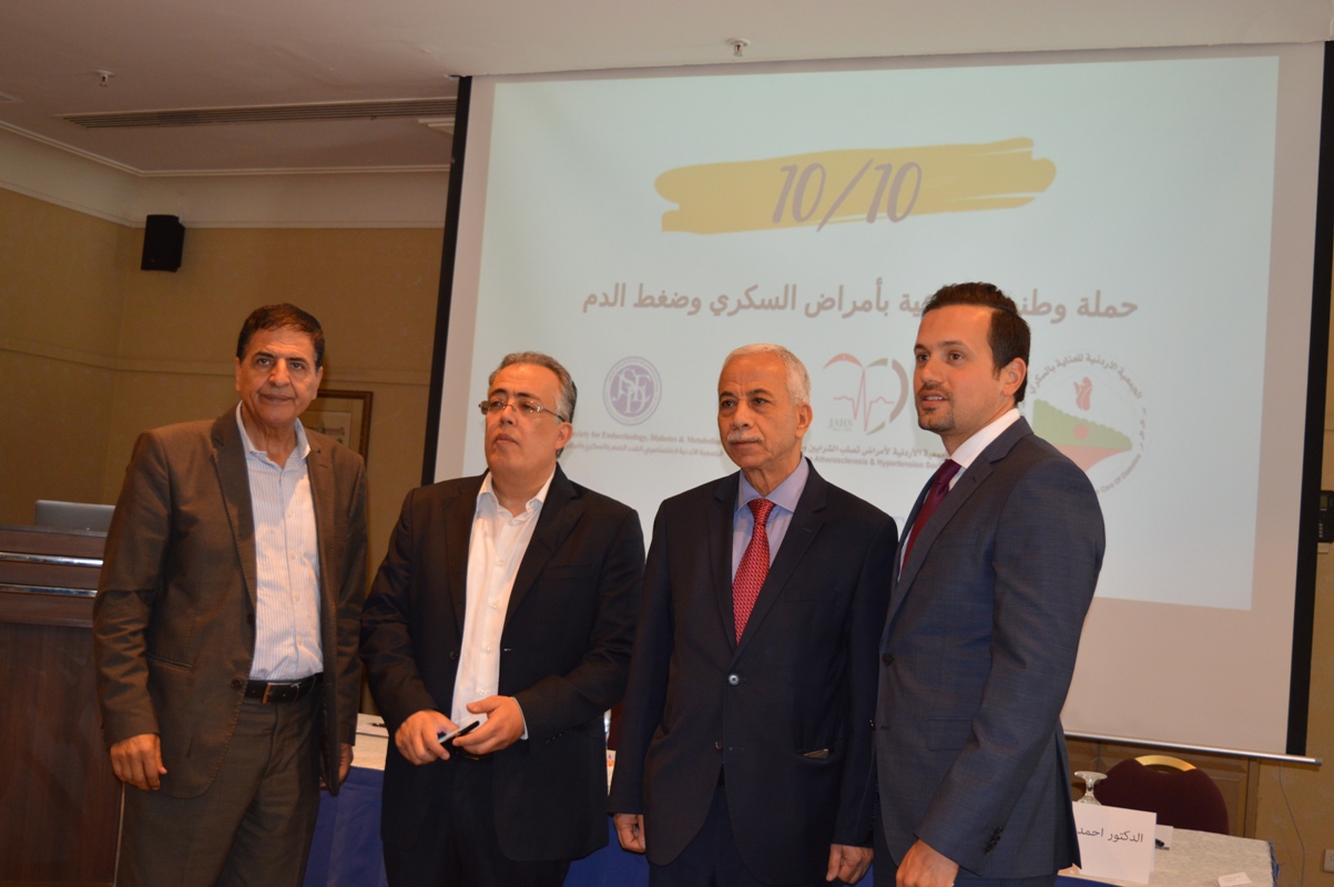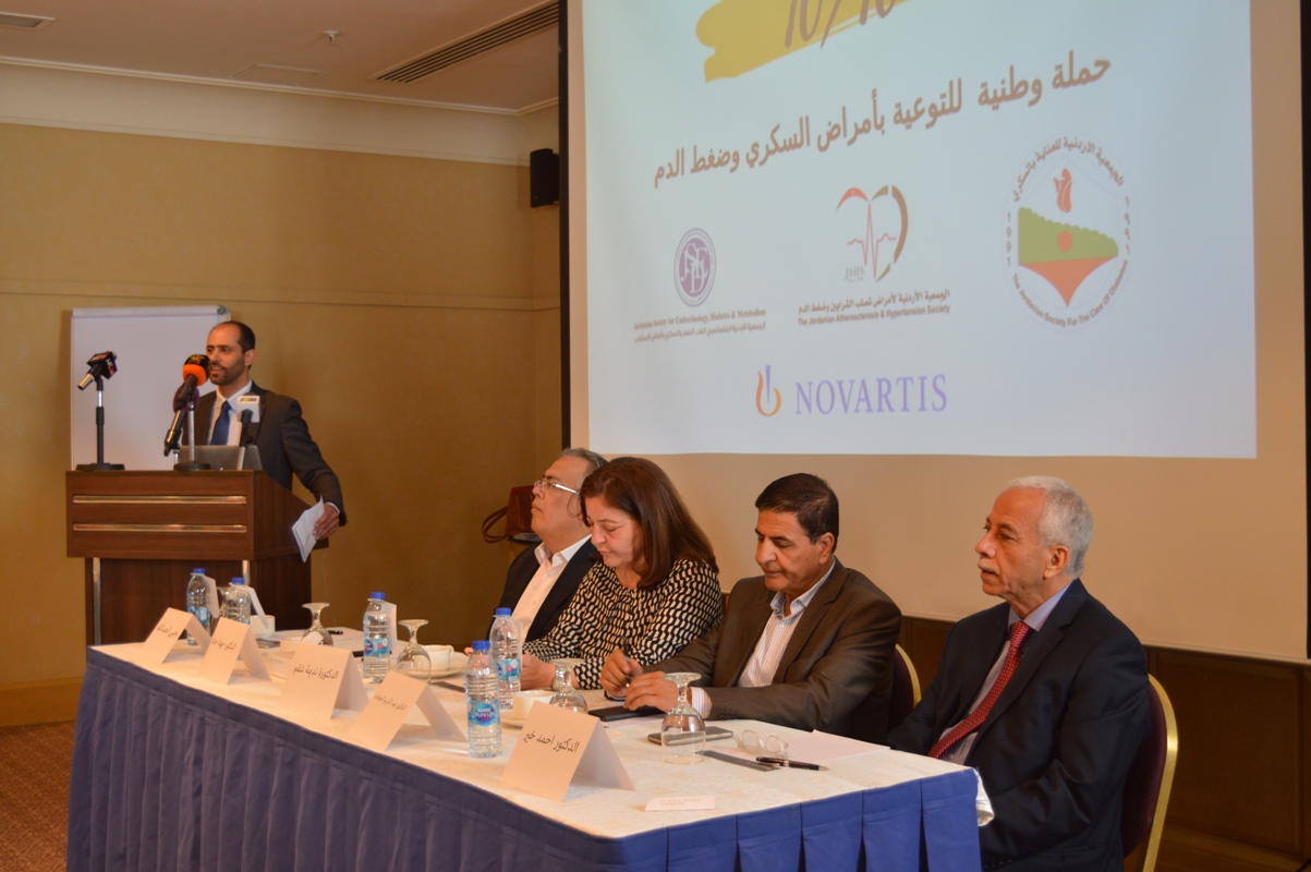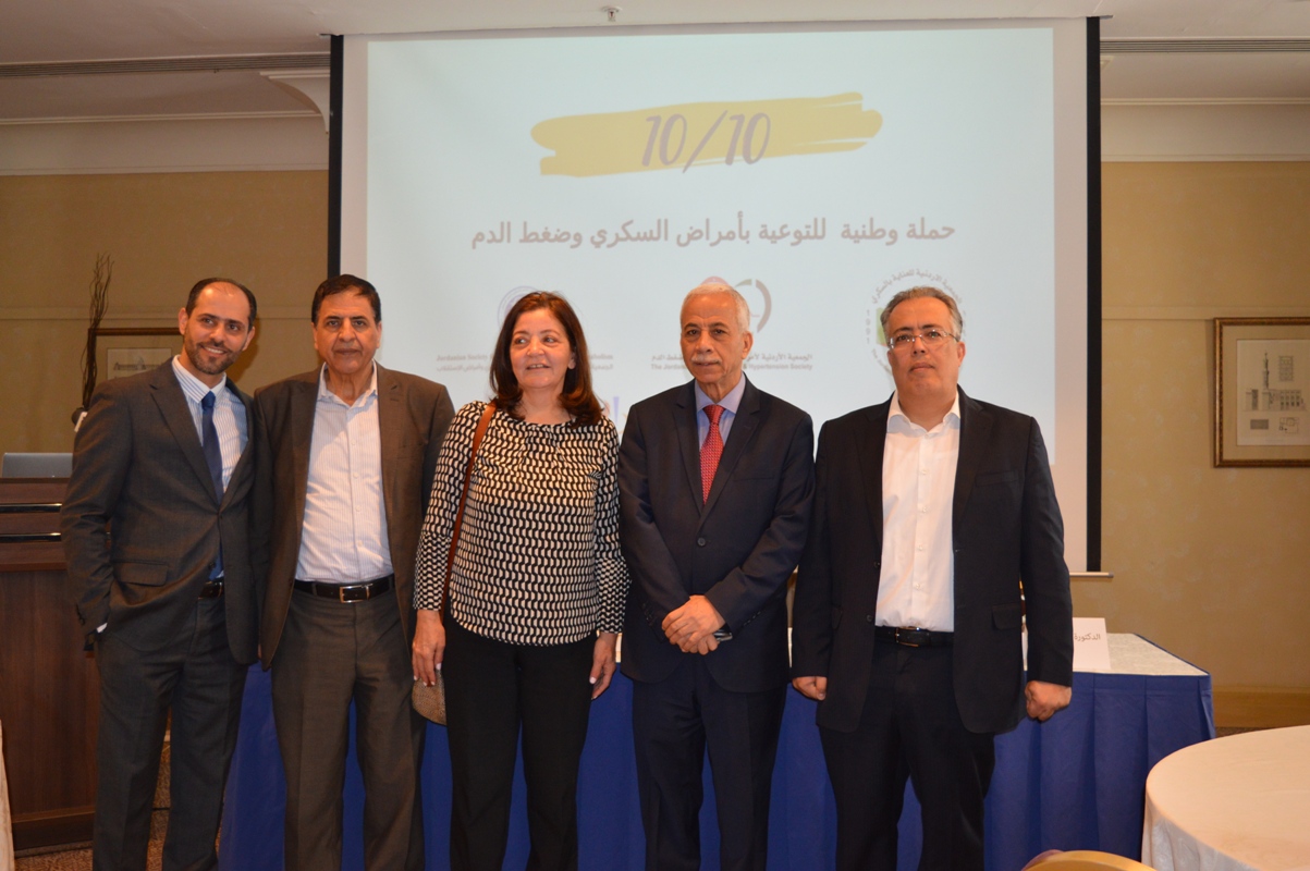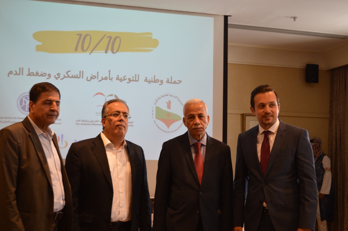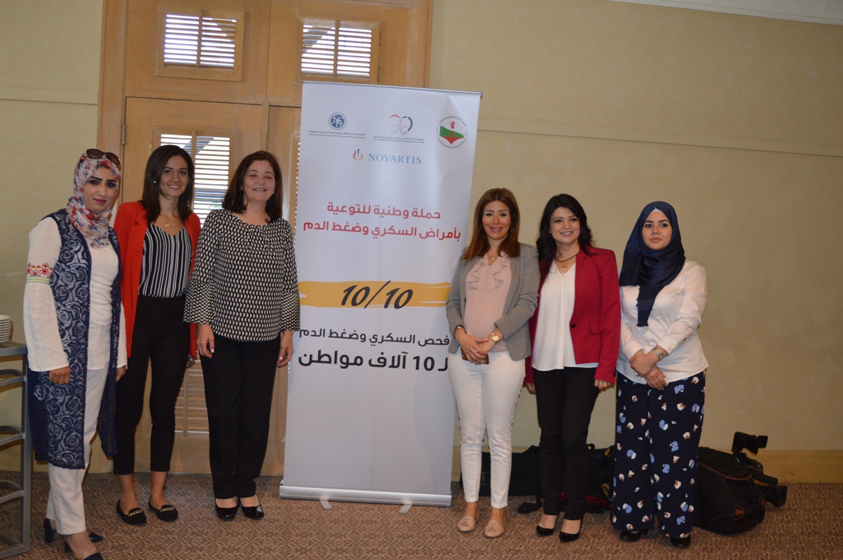 عمان 9 ايار 2018 – أطلقت الجمعية الأردنية للعناية بالسكري، والجمعية الأردنية لاختصاصيي الغدد الصم والسكري وأمراض الاستقلاب، والجمعية الأردنية لأمراض تصلب الشرايين وضغط الدم أمس حملة وطنية للتوعية بمرض السكري والضغط بعنوان "١٠/١٠" بمناسبة اليوم العالمي للضغط وحلول شهر رمضان المبارك، وتنطلق الحملة بدعم من شركة نوفارتس، وذلك في مؤتمر صحفي حضره عدد من الصحفيين والأطباء والمتخصصين المهتمين بالقطاع الصحي في الأردن.