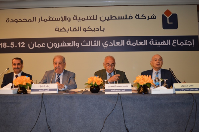 عقدت الهيئة العامة لشركة فلسطين للتنمية والاسثمار المحدودة "باديكو القابضة " اجتماعها السنوي العادي الثالث والعشرين في العاصمة الاردنية عمان بحضور أعضاء مجلس الإدارة وعدد من المساهمين مثلو النصاب القانوني , وأعلن الامين العام للشركة السيد زياد الترك قانونية الاجتماع باكتمال النصاب .