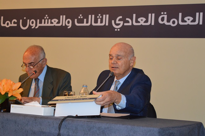 والقى رئيس مجلس الادارة " منيب المصري " كلمة رحب فيها بالحضور في كل من الأردن وفلسطين وقال :