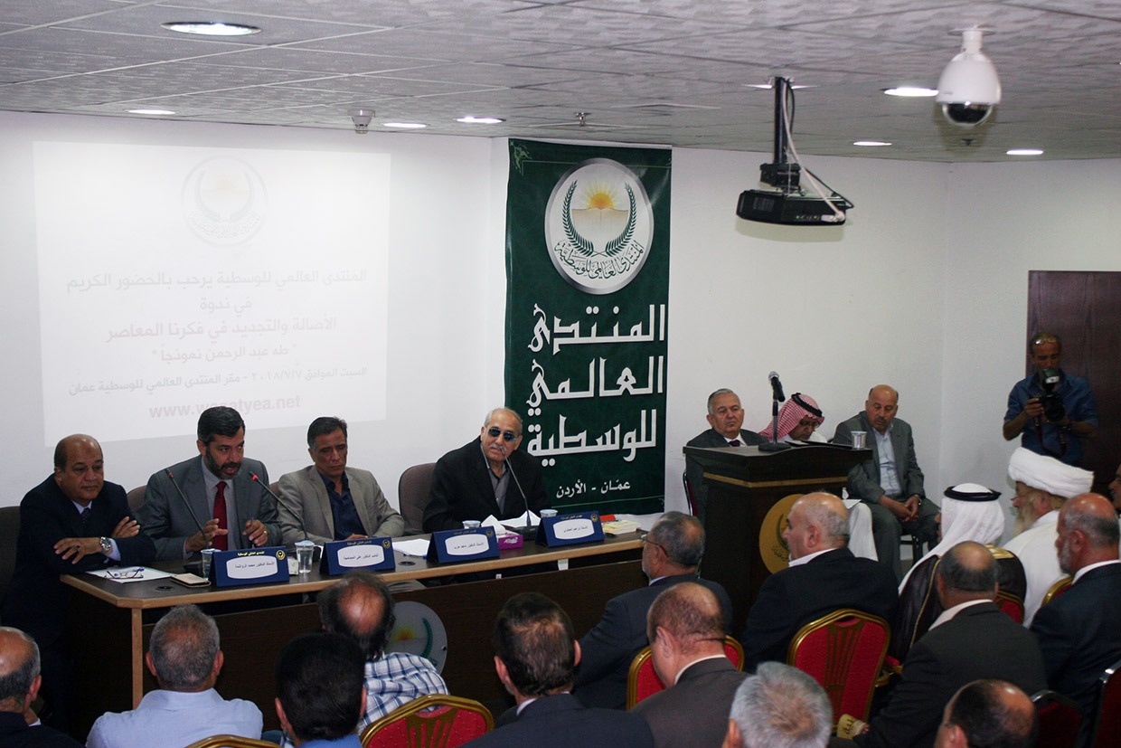 أقام المنتدى العالمي للوسطية ندوة بعنوان الأصالة والتجديد في فكرنا المعاصر وذلك يوم السبت بتاريخ 7/7/2018 تناولت الفيلسوف المغربي طه عبدالرحمن نموذجاً.