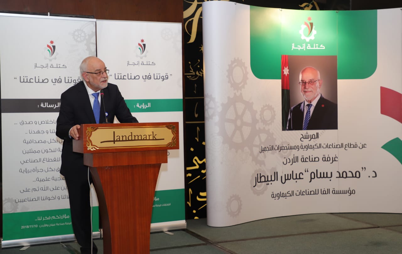 يذكر أن الدكتور بسام البيطار مرشح الكتلة لانتخابات غرفة صناعة الأردن عن قطاع الكيماويات ومستحضرات التجميل هو ممثل القطاع حاليا في غرفة صناعة الاردن ،