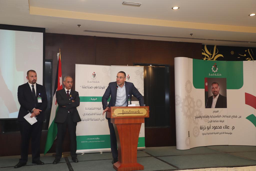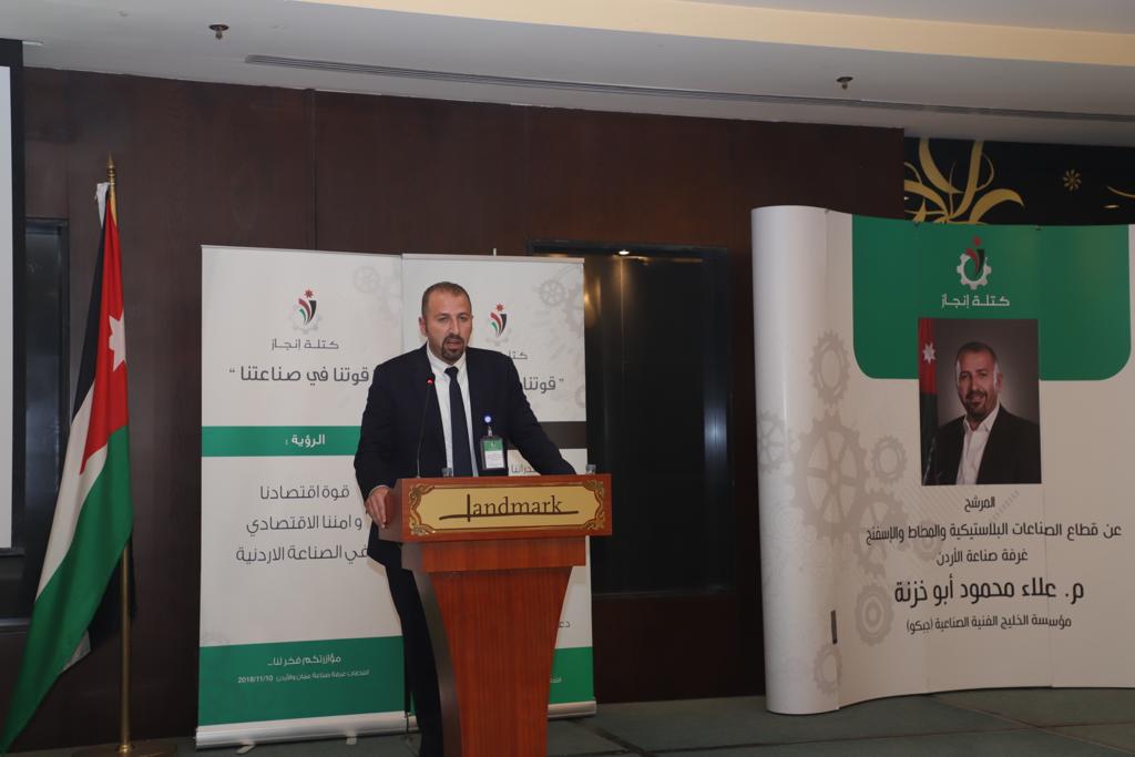 وقالت الكتلة خلال عرض خطط النهوض بالقطاع من قبل المرشح عن تمثيل القطاع في غرفة صناعة الاردن علاء أبو خزنة ان الانتخابات الصناعة تشكل فرصة للوقوف و دراسة الوضع الحالي لقطاع الصناعات البلاستيكية والعمل على التطوير وتحسين مصانعنا الأسواق التي من الممكن أن نصل اليها ونقصدها.