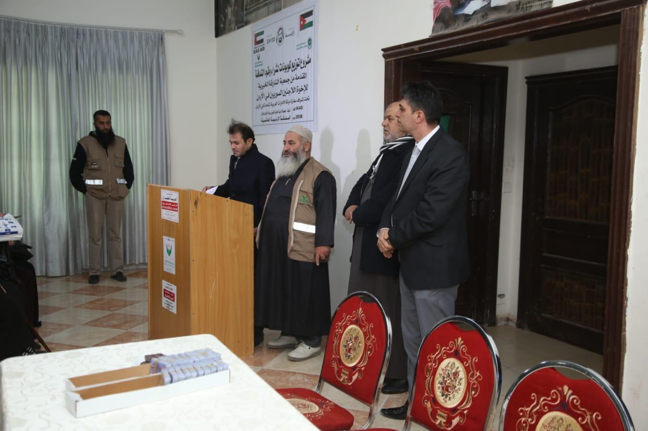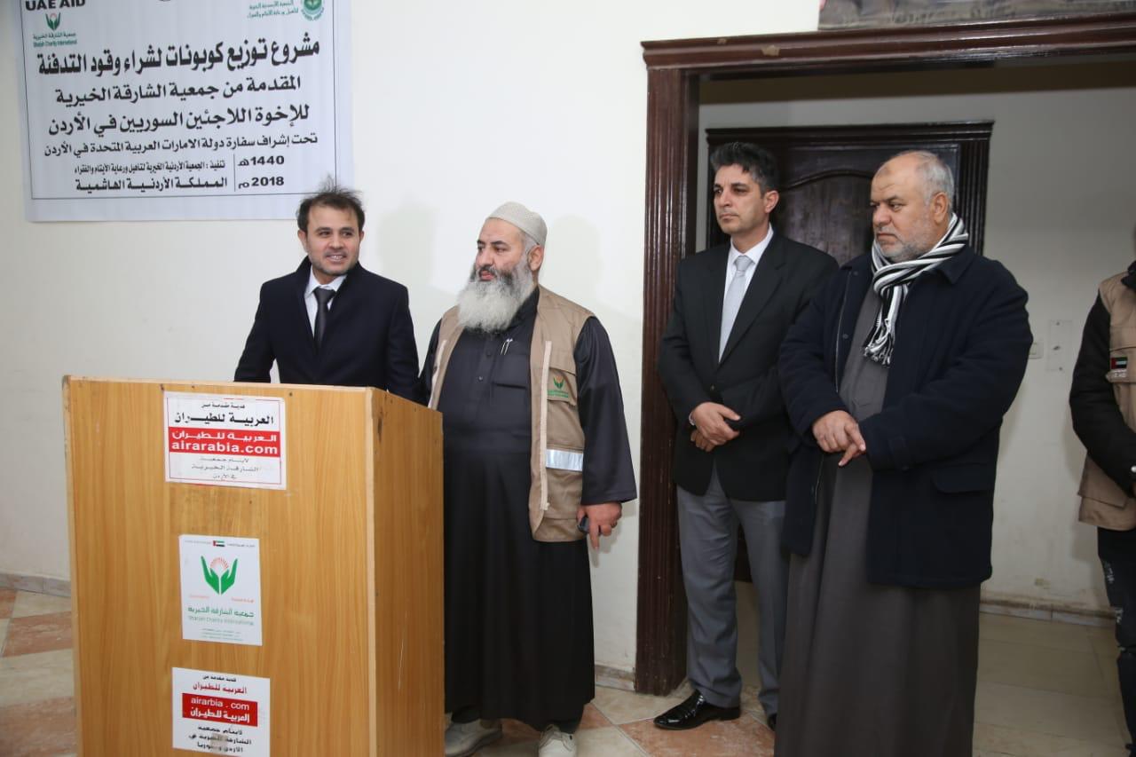 في إطار عام زايد وتحت اشراف سفارة دولة الإمارات العربية المتحدة بعمّان تم تنفيذ مشروع توزيع كوبونات مالية لشراء وقود التدفئة لشتاء دافيء، المقدمة من جمعية الشارقة الخيرية للإخوة اللاجئين السوريين في الأردن، وقام القائم بأعمال السفارة فيصل أحمد آل مالك صباح اليوم الخميس بتوزيع الكوبونات على 400 اسرة سورية، وذلك في مقر الجمعية الأردنية الخيرية لتأهيل ورعاية الأيتام والفقراء. وقد شكرت العائلات العفيفة الجهود التي تقدمها المؤسسات والهيئات والجمعيات الخيرية الإماراتية في مساندة اشقائهم، مؤكدين على النهج الخير والإنساني التي تتبناه دولة الامارات العربية المتحدة وبما يعزز أواصر الرحمة والتواصل الاجتماعي والإساني