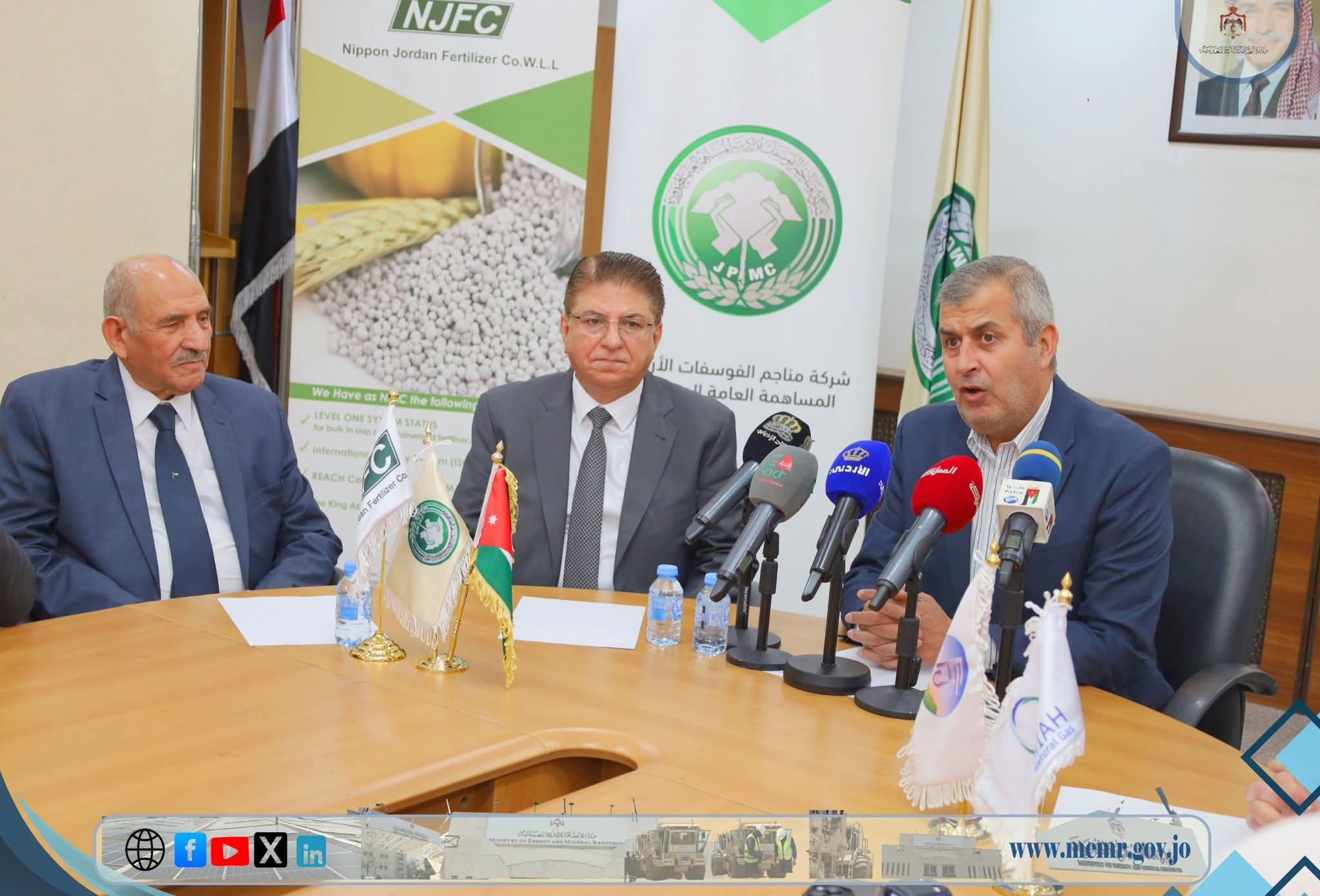 14 آب 2025- شهد وزير الطاقة والثروة المعدنية الدكتور صالح الخرابشة، ورئيس مجلس إدارة شركة مناجم الفوسفات الدكتور محمد الذنيبات، ورئيس مجلس إدارة الشركة اليابانية الأردنية للأسمدة المهندس فارس القطارنة، وبحضور رئيس مجلس المفوضين والرئيس التنفيذي لهيئة تنظيم قطاع الطاقة والمعادن المهندس زياد السعايدة، مراسم توقيع اتفاقيات بين شركة الأسمدة اليابانية الأردنية (نيبون) وشركة فجر الأردنية المصرية وشركة تنمية، وذلك لتوصيل وبيع الغاز الطبيعي لمصنع الأسمدة اليابانية الأردنية (نيبون) في المنطقة الجنوبية بمدينة العقبة.