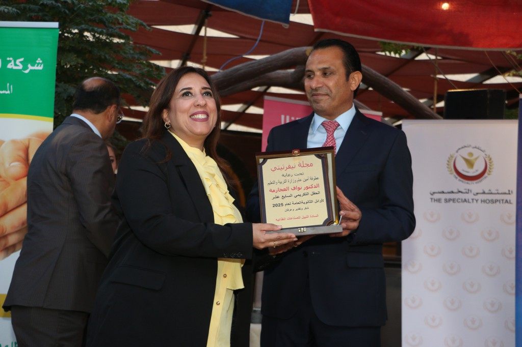 رعى أمين عام وزارة التربية والتعليم الدكتور نواف العجارمة يوم أمس الثلاثاء الموافق 9/9/2025 حفل تكريم أوائل الثانوية العامة بالمملكة السابع عشر والذي تقيمه مجلة نفرتيتي سنوياً في "قرية النخيل" بحضور عدد كبير من الطلبة وذويهم وأصحاب العطوفة والسعادة وممثلي وسائل الإعلام والمواقع الإخبارية.
