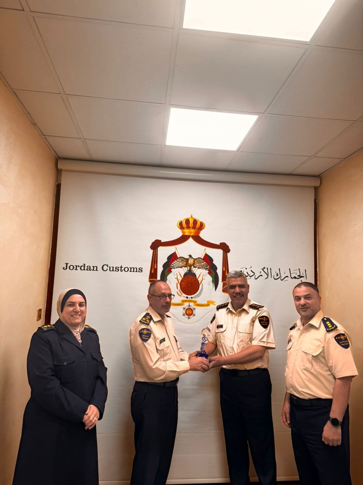قدّم فريق الثقافة المؤسسية بالجمارك الأردنية مجسم قيم الثقافة المؤسسية لمدير عام الجمارك الأردنية، لواء جمارك أحمد العكاليك تزامناً مع انطلاق فعاليات الفريق بالمراكز الجمركية، ولدوره الريادي كقدوة حسنة في محور القيادة.