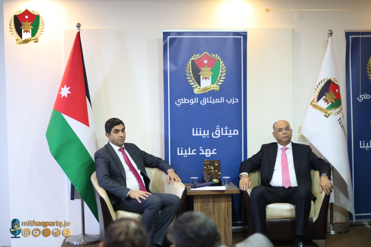 عقد حزب الميثاق الوطني جلسة حوارية بعنوان "كيفية تشكيل الكتل الطلابية داخل الجامعات"، قدمها الدكتور حازم النسور رئيس المحكمة الحزبية بحضور الامين العام بالوكالة ورئيس كتلة الميثاق النيابية وعدد من أعضاء المكتب السياسي والمجلس المركزي والهيئة العامة وحضور من المهتمين بالشأن الشبابي والحزبي .