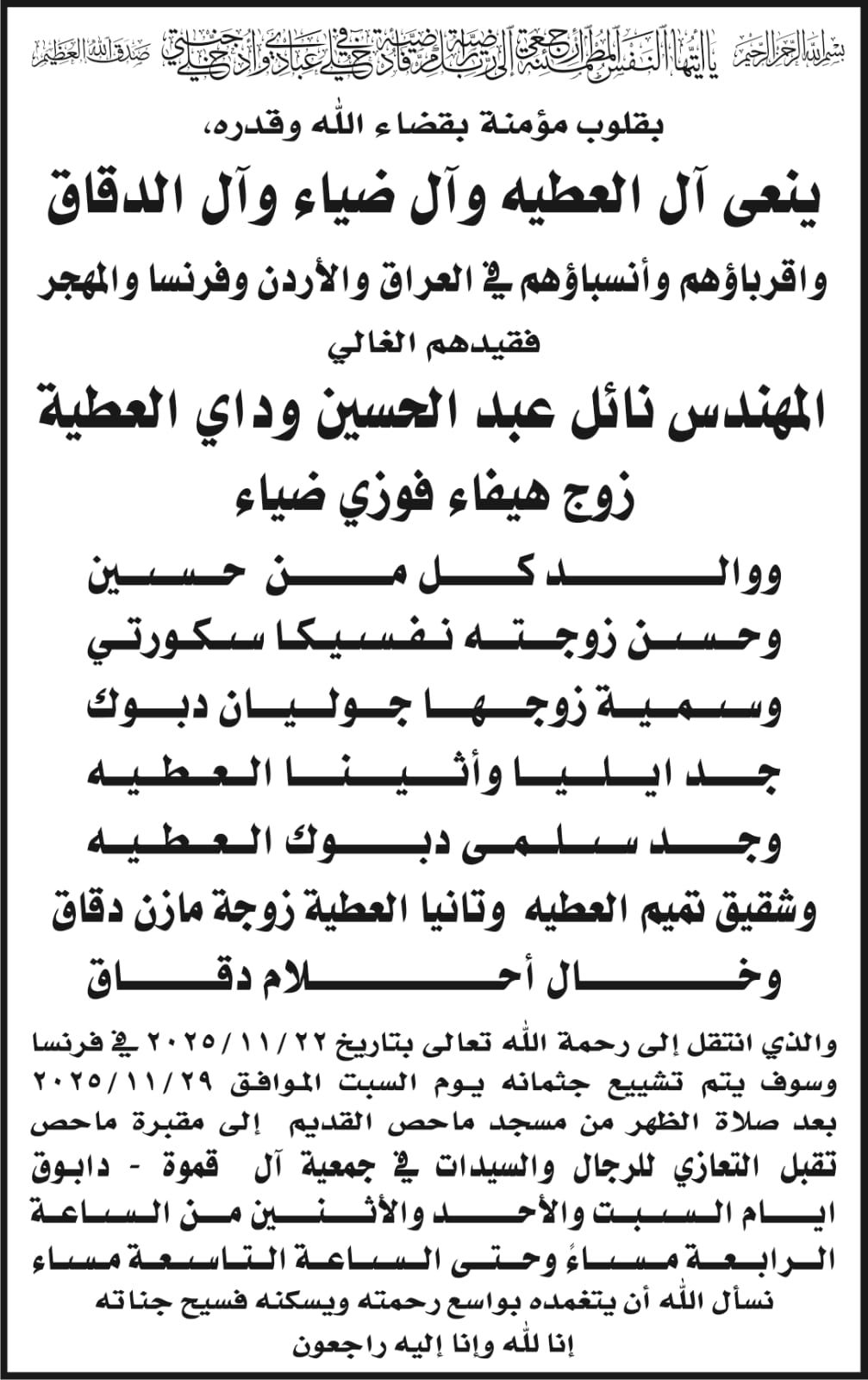 والدة المحافظ بوزارة الداخلية الدكتور حاكم الخريشا بذمة الله تعالى