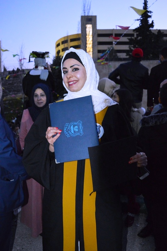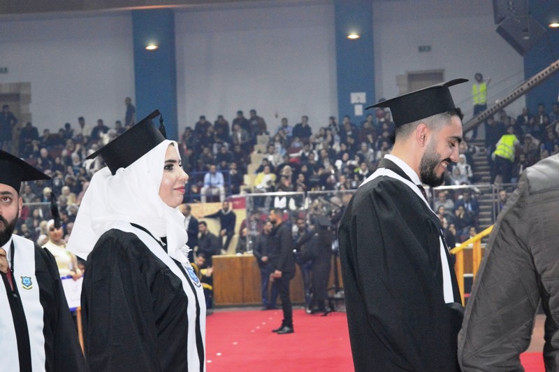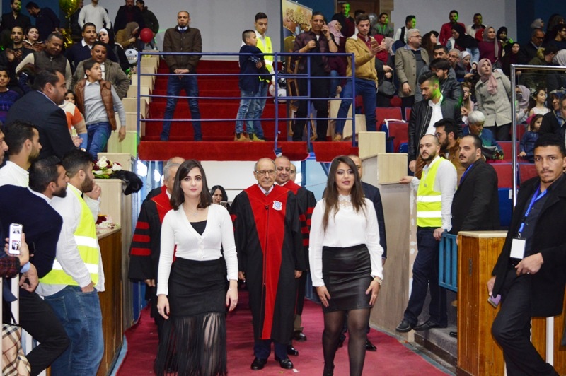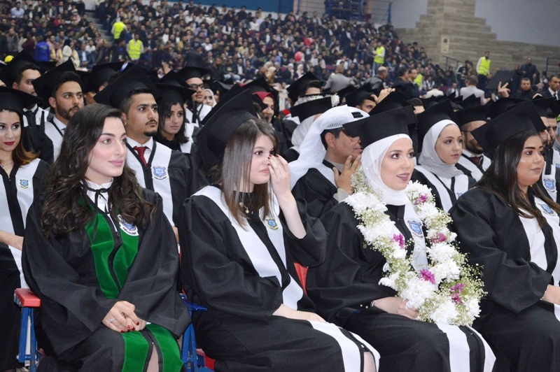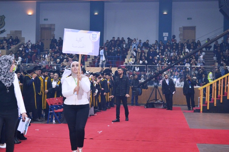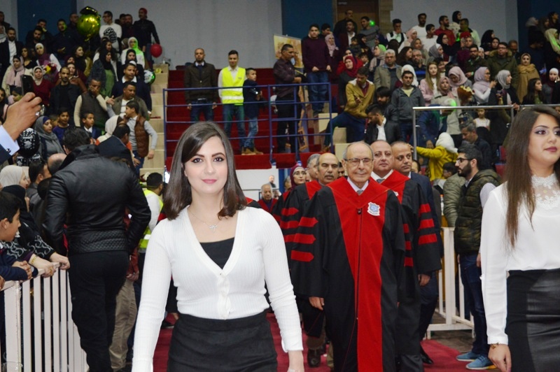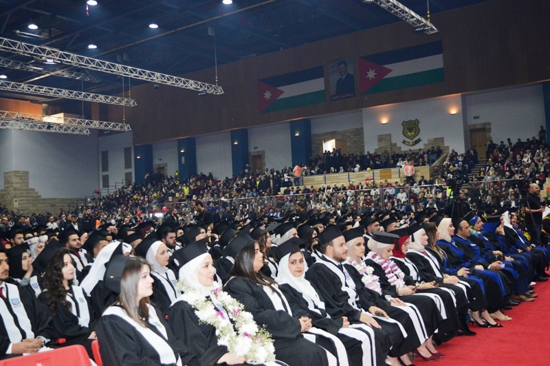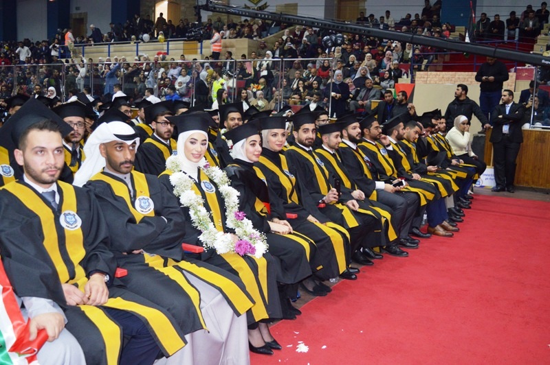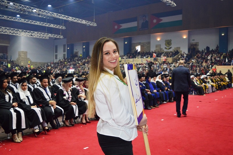 تلا ذلك كلمة الخريجين والخريجات القتها الطالبة دانيا قطيشات من كلية الحقوق شكرت خلالها القائمين على الجامعة ورئاستها والهيئتين التدريسية والادارية وكافة العاملين فيها واشادت بالمناخ التعليمي والاكاديمي والبيئة التعليمية المثالية لتحقيق التميز من خلال ما توفره الجامعة من متطلبات لانجاح الخطة الدراسية وتحقيق النتائج المرجوة ، وقدرت عاليا وبإسم كافة الخريجين التعب والدعم الذي قدمه لهم اولياء امورهم للوصول الى هذا اليوم الذي تتحقق فيه امنيات كل طالب علم بنيل شهادته الجامعية متسلحا بها لدخول الحياة العملية بقوة وثبات وثقة بالنفس.