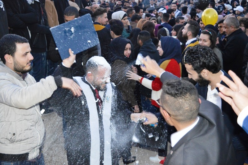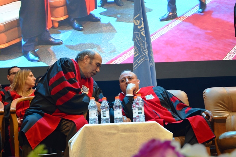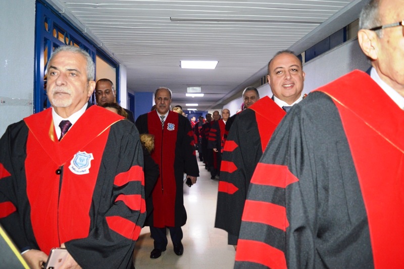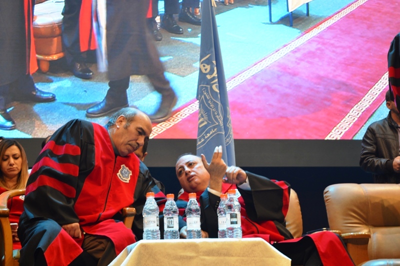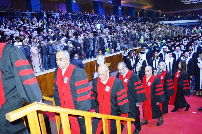 بعد ذلك جاء موعد الاعلان عن اوائل الخريجين في مختلف التخصصات وقدم الدكتور مصطفى عطيات عميد شؤون الطلبة بيان التخريج للفوج وكما قدم كل من العمداء بيان تخريج طلبة كليته ليتلو ذلك تسليم الطلبة الخريجين شهادات التخرج. متزامنا ذلك مع الاهازيج والافراح التي امتلآت بها مدرجات صالة الارينا من ذوي واهالي الطلبة الخريجين والتقاط الصور التذكارية لهذه المناسبة السعيدة .