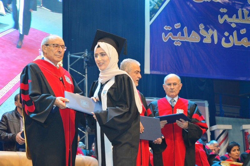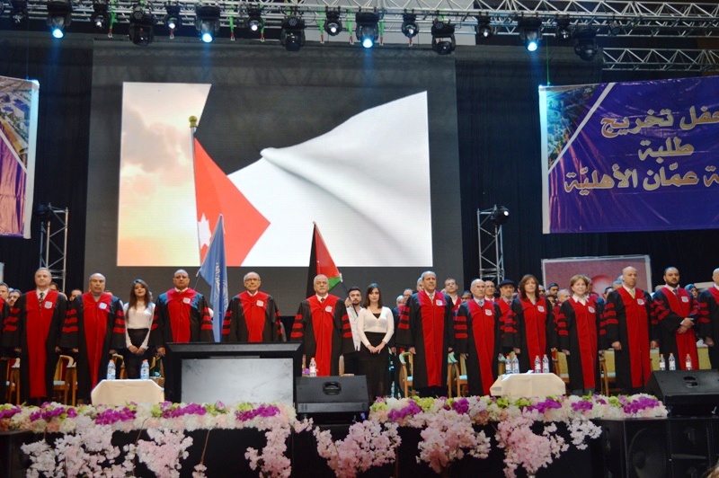 برعاية الدكتور ماهر الحوراني رئيس هيئة المديرين لجامعة عمان الاهلية احتفلت الجامعة بتخريج الفوج السادس والعشرين من طلبة الفصل الدراسي الأول للعام الجامعي 2018-2019 على مسرح الأرينا مساء الجمعة 22-2-2019 بحضور معالي الاستاذ محمد صالح الحوراني رئيس مجلس أمناء الجامعة وأ.د. ساري حمدان رئيس الجامعة ، وعدد من أعضاء مجلس الأمناء واعضاء هيئة المديرين بالإضافة إلى العمداء وأعضاء الهيئتين التدريسية والإدارية وحشد كبير من اولياء امور واهالي الطلبة الخريجين والمدعويين .
