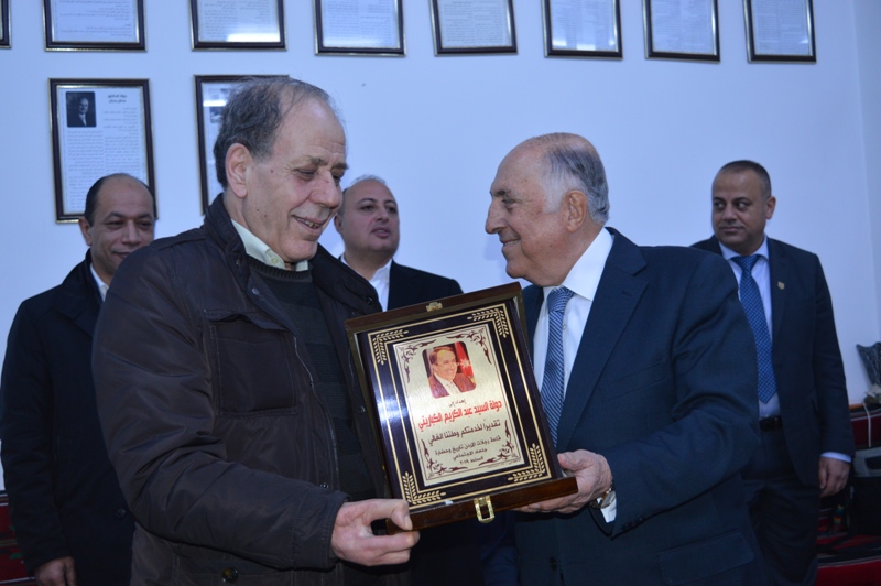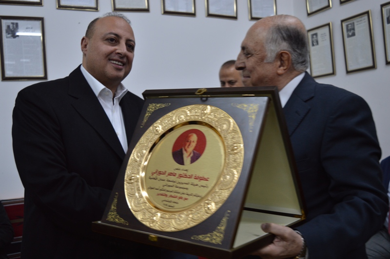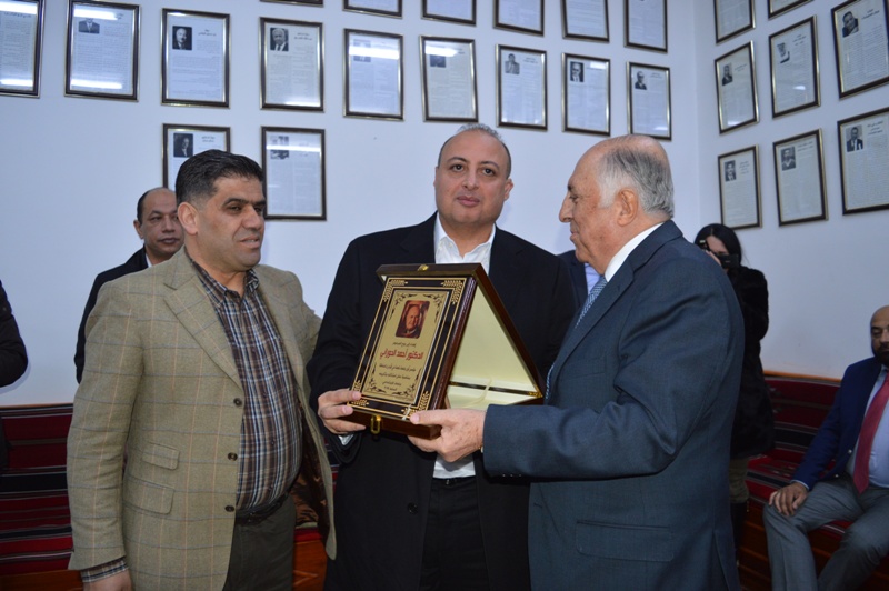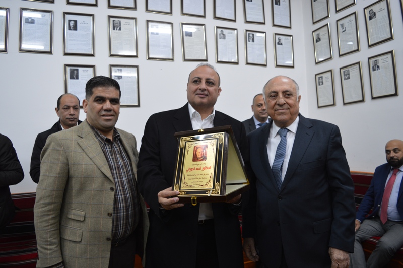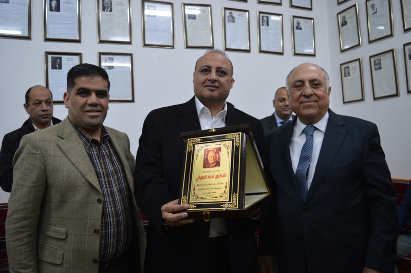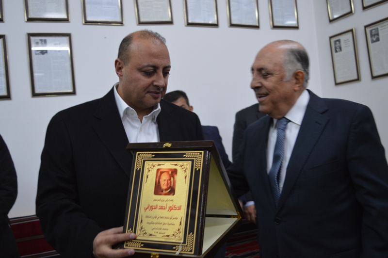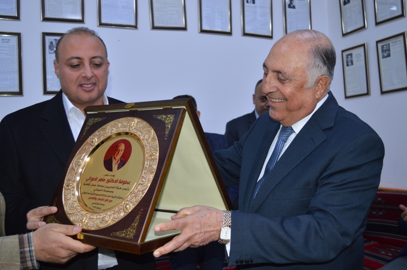 ثم قام معالي العين سامي قموه بتقديم الدرع التكريمي لروح المرحوم الدكتور احمد الحوراني حيث تسلمه نجله الدكتور ماهر الحوراني الى جانب تقديمه درعا تكريميا للدكتور ماهر الحوراني على جهوده وانجازاته .