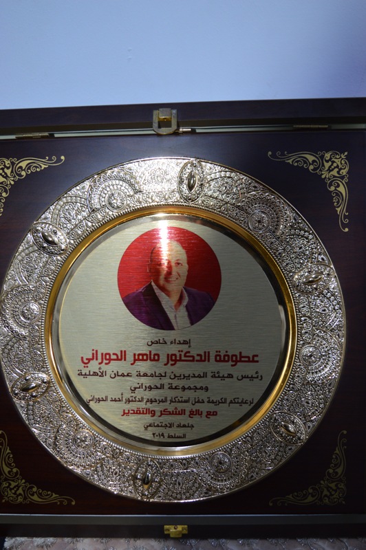 وعلى هذا النهج وفي الذكرى الثالثة لرحيل المرحوم الدكتور احمد الحوراني التقى مساء السبت 23-2-2019 ثلة من رجالات الاردن والسلط في ملتقى جلعاد الاجتماعي يتقدمهم الوزير الاسبق العين سامي قموه ورئيس بلدية السلط الكبرى المهندس خالد الخشمان وعددا من وجهائها وشيوخها واكاديميين وتربويين، وشخصيات واكبت مسيرة الاقتصادي والاكاديمي المعروف المرحوم الدكتور احمد الحوراني في مسيرته الحافلة بالعطاء والمشروعات الاقتصادية والتعليمية التي اثرت الاقتصاد الوطني وفي مقدمتها اول جامعة اردنية خاصة في الاردن والمنطقة هي جامعة عمان الاهلية التي تعد في طليعة الجامعات الاردنية نسبة لمستواها التعليمي وشراكاتها الاكاديمية مع كبرى الجامعات في العالم والحائزة على اعلى التصنيفات محليا وعربيا ودوليا والاولى في نسبة الدارسين الوافدين العرب بالنظر للسمعة العطرة في ميدان التعليم العالي على مستوى الوطن العربي.