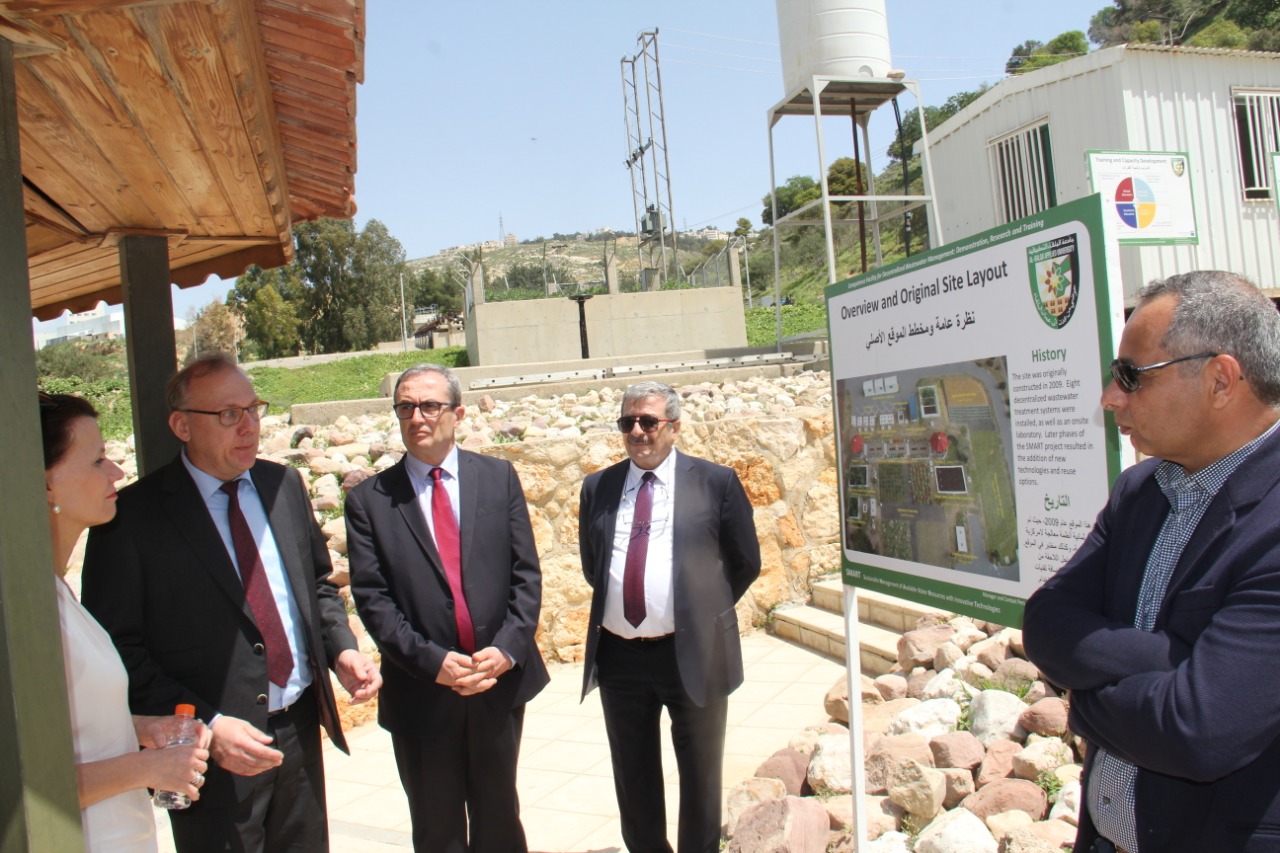 زارت الأمين العام لوزارة البيئة الالمانية ريتا شوارزيلور سوتر ومدير برنامج التعاون الألماني الدكتورة يونا سبير ومدير دائرة تكنولوجيا البيئة في مؤسسة هيلمهولتز الألمانية الأستاذ الدكتور رولاند مولر والوفد المرافق لهم المنشأة النموذجية للإدارة اللامركزية للمياه العادمة الكائنة في منطقة الفحيص والتابعة لجامعة البلقاء التطبيقية .