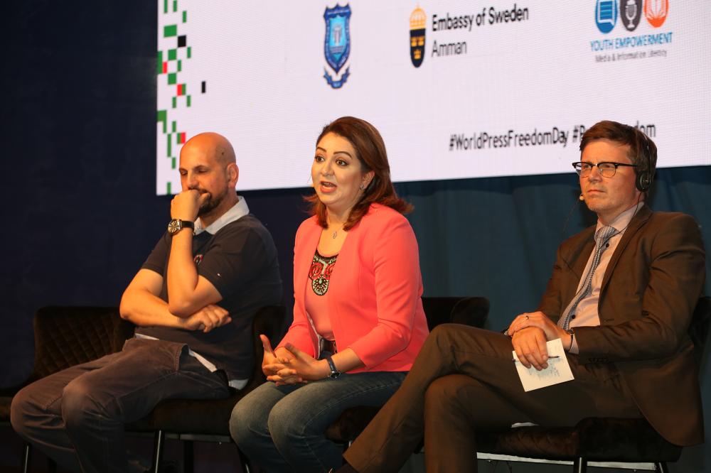 وشارك في النقاش سفیر مملكة السوید في الأردن السفیر إریك أولنھاغ، وعقدت عدة جلسات نقاشية وورش عمل حول قضايا دور الإعلام في ترسيخ الديمقراطية، وحرية التعبير، وحماية الصحفيين، وأهمية الإفصاح الطوعي عن المعلومات، ومحاربة الشائعات وخطاب الكراهية والتضليل الإعلامي.