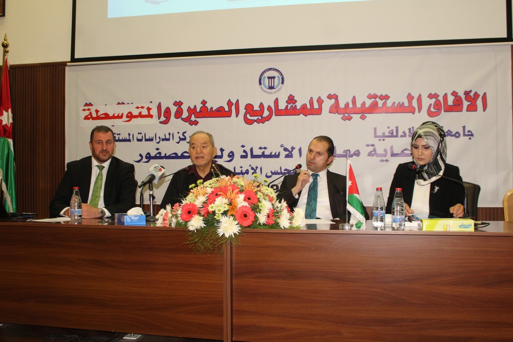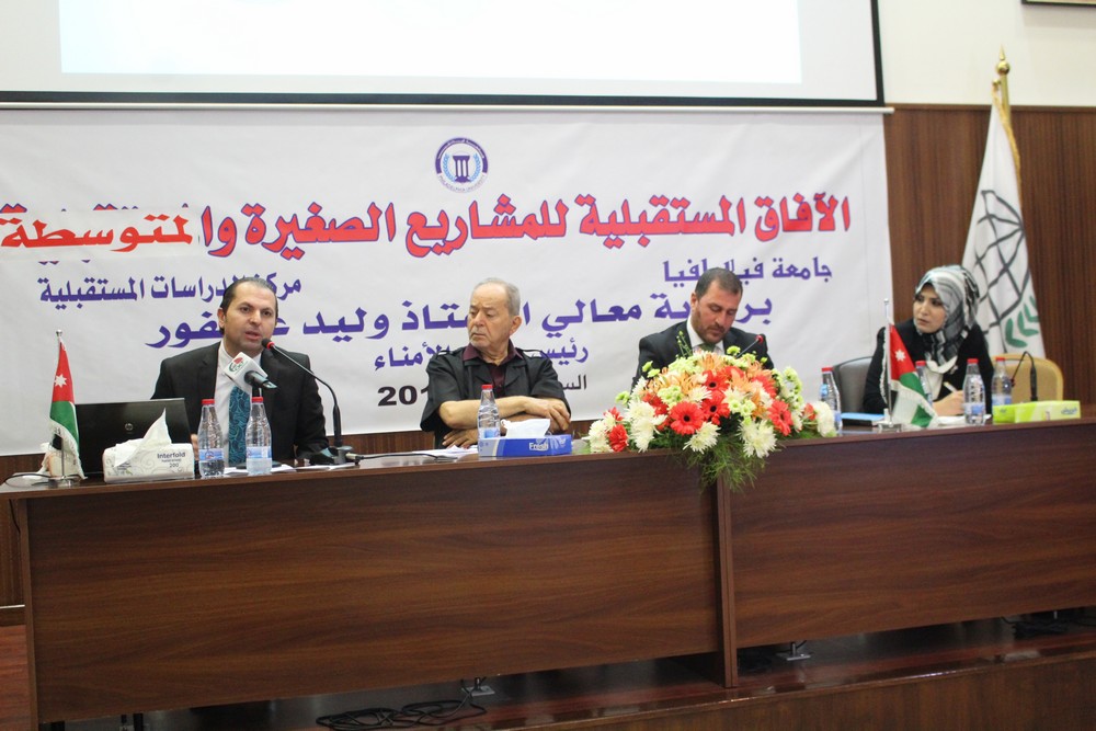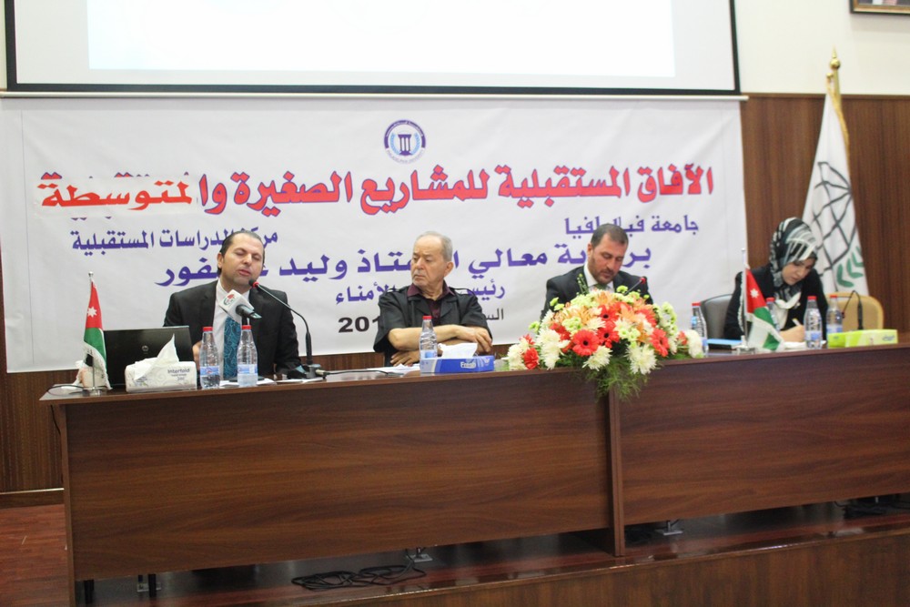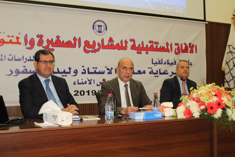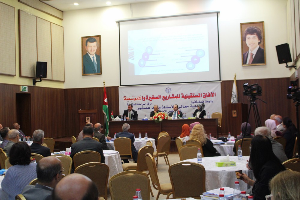 تحت هذا هذا العنوان افتتح الاستاذ الدكتور معتز الشيخ سالم إلى أن هذه المشاريع تشكل ،وأشار في كلمة الافتتاح،للمشاريع الصغيرة والمتوسطة % من المشاريع العاملة في البلاد 90 % من الناتج المحلي الاجمالي وتضم أكثر من 40 ومن هنا فإن دورها في الاقتصاد الأردني كما فى الدول الأخرى بالغ الأهمية. ؛كونها تشكل النسبة الأكبر من مكونات هذا الاقتصاد .