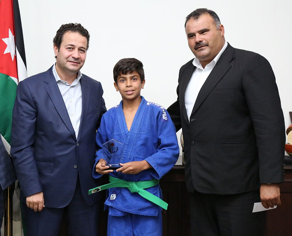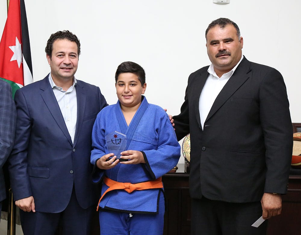 كرّم وزير الشباب ووزير الثقافة الدكتور محمد أبو رمان اليوم الخميس اللاعبين علاء درويش ومحمد البكار ويزن العفيشات الحائزين على بطولات مختلفة في العاب ناشئي الجودو واللاعب محمد المهيرات الحائز على ذهبية بطولة king of the ring للملاكمة في السويد للعام ٢٠١٨