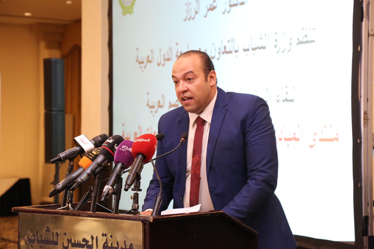 بدوره نقل مندوب جامعة الدول العربية تامر جمعة تحيات امين عام الجامعة مبينا ان مجلس وزراء الشباب والرياضة العرب يولى تمكين وتأهيل الشباب جل اهتمامه ايمانا من الجامعة العربية بأن الشباب هم مستقبل الأمة مبينا ان أهمية هذا اللقاء تتمثل في غرس المواطنه لدى الشباب وتوجيه طاقات الشباب نحو انشطة تدعم الامن والاستقرار.