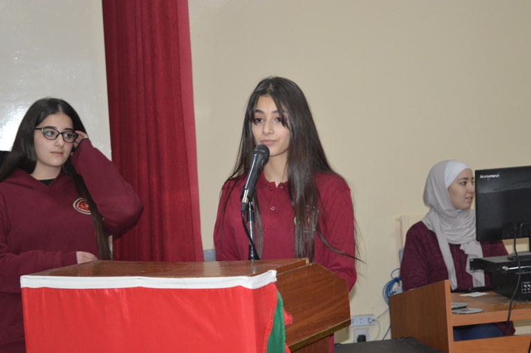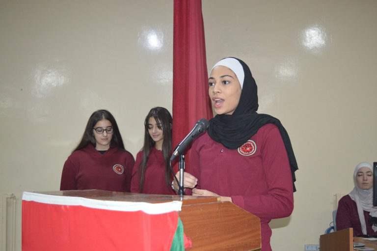 فيما تحدثت مديرة المدرسة السيدة " مها الخطيب " حول اهمية سعي الطلبة للتغيير وبناء انفسهم بمعرفة الطريق الصحيح للنجاح, داعية الطلبة لتطوير انفسهم والدفاع عن مبادئهم والسعي لتحقيق طموحاتهم والتعبير عن آرائهم دون المساس بحرية وحقوق الآخرين .