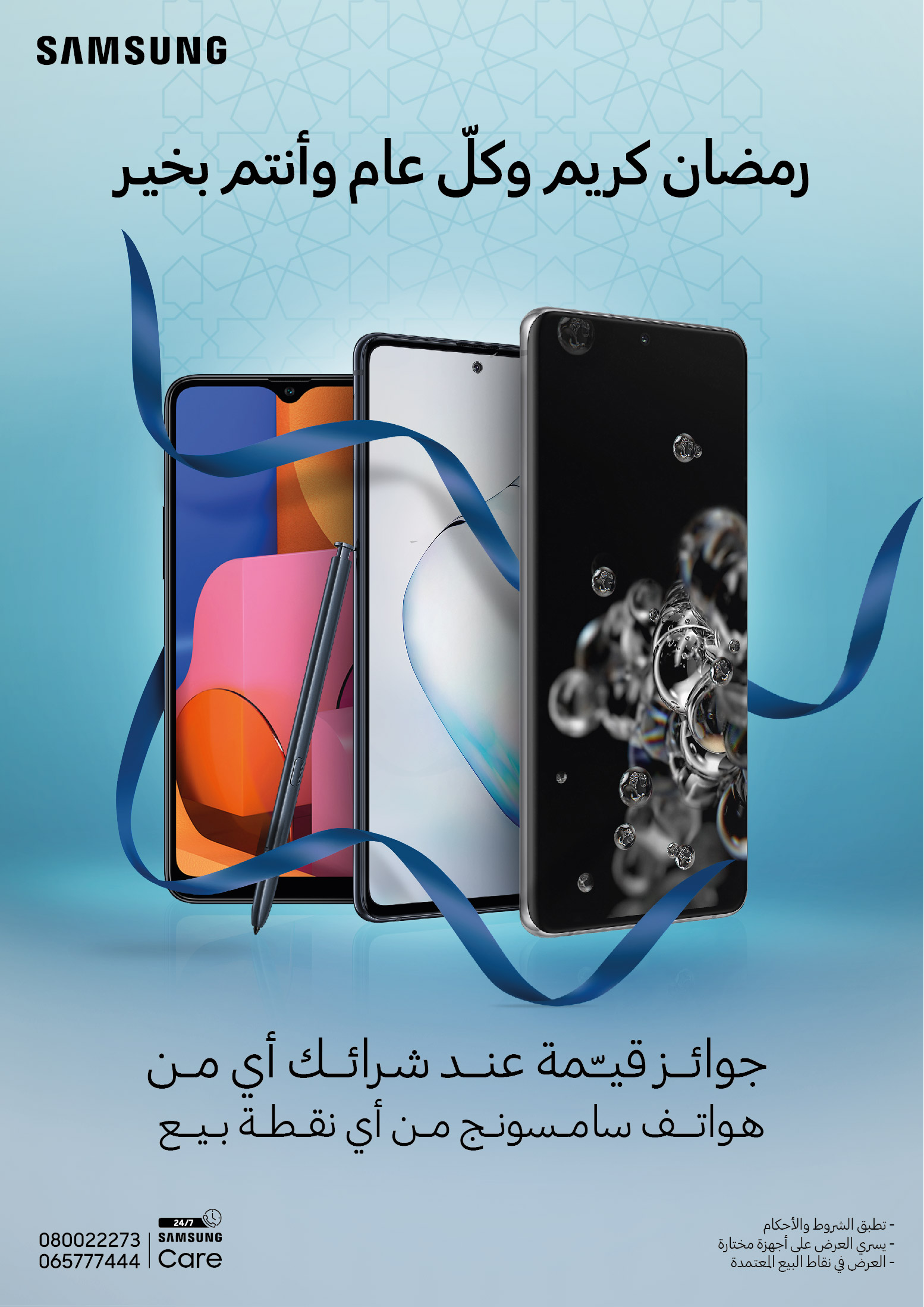 بمناسبة حلول عيد الفطر السعيد 《شركة سامسونج الكترونيكس المشرق العربي 》تطلق حملة عروض وخصومات وجوائز مميزة عند شراء مجموعة مختارة من هواتف سامسونج