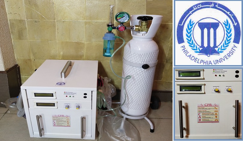 انطلاقاً من استراتيجية جامعة فيلادلفيا بالتركيز على البحوث والمشاريع التطبيقية والتي يمكن ان تأتي عنها نتائج تخدم المجتمع الوطني والدولي، تمكنت الجامعة وبدعم من مستشار الجامعة معالي الأستاذ الدكتور مروان كمال ورئيسها الأستاذ الدكتور معتز الشيخ سالم ،وبالعمل الدؤوب من المهندس عبدالله وضاح الضباطي المطيري أحد خريجي قسم هندسة الميكاترونكس وبإشراف مباشر من الأستاذ الدكتور قاسم موسى العبيدي عميد البحث العلمي والدراسات العليا في كلية الهندسة والتكنولوجيا، تمكنت الجامعة من تصميم وتطوير جهاز تنفس وإنعاش قلبي رئوي محمول ومنخفض الكلفة. حيث يقوم الجهاز بتوفير التنفس الصناعي ومراقبة معدل ضربات القلب وقوة ضغط المسعف على صدر المريض اعتماداً على استجابة المريض للتنفس الصناعي. تكمن أهمية الجهاز في مساعدة مرضى الجهاز التنفسي بسبب الإصابة بالفايروسات (مثل وباء كورونا) أو الذين يحتاجون إلى تنفس صناعي نتيجة الإصابات الرياضية أوالحوادث أو كبار السن، أو أي إصابات تتطلب تدخلًا سريعاً، نظراً لأن الجهاز سهل الاستعمال وقابل للحمل ويمكن استخدامه في الأماكن التي يصعب الوصول إليها. علماً بأن النموذج الهندسي الأول للجهاز صُنع في الورشة الالكترونية للمهندس عبدالله وضاح المطيري في جمهورية إندونيسيا وباشراف مباشر من الأستاذ الدكتور قاسم العبيدي. وقد أثنى معالي الأستاذ عبدالله أبو رمان سفير المملكة الأردنية الهاشمية لدى جمهورية إندونيسيا على هذا الأنجاز في هذه الظروف الصعبة وأكد استعداد السفارة لكل أشكال الدعم الممكنة. كما تواصل السفير مباشرة مع الأستاذ الدكتور قاسم العبيدي، الذي أكد بدوره، إن جامعة فيلادلفيا ستعمل على تطوير الجهاز وجعله منافساً للأجهزة الطبية المماثلة وبكلفة منخفضة. علماً بأن وسائل الأعلام الإندونيسية أشادت بهذا العمل الهندسي المتميز في زمن جائحة كورونا.