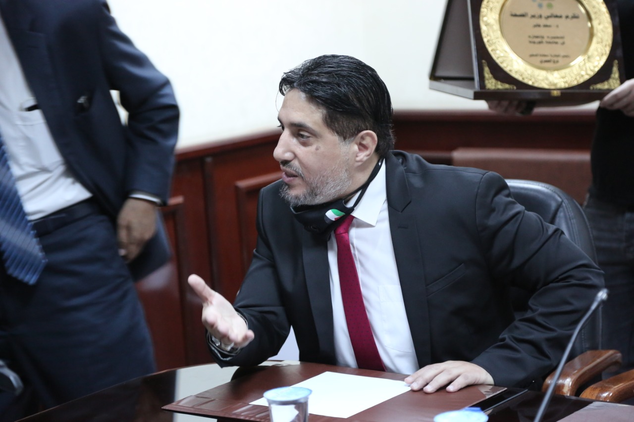 وقد أعلن معاليه إكمال برنامج التكريم للعديد من القطاعات الصحيه والمستشفيات والمراكز النموذجية الشامله في المحافظات وفرق التقصي الوبائي كل في موقعه تماشيا مع أوامر الدفاع وإنسجاما مع البروتوكول الصحي المعمول به