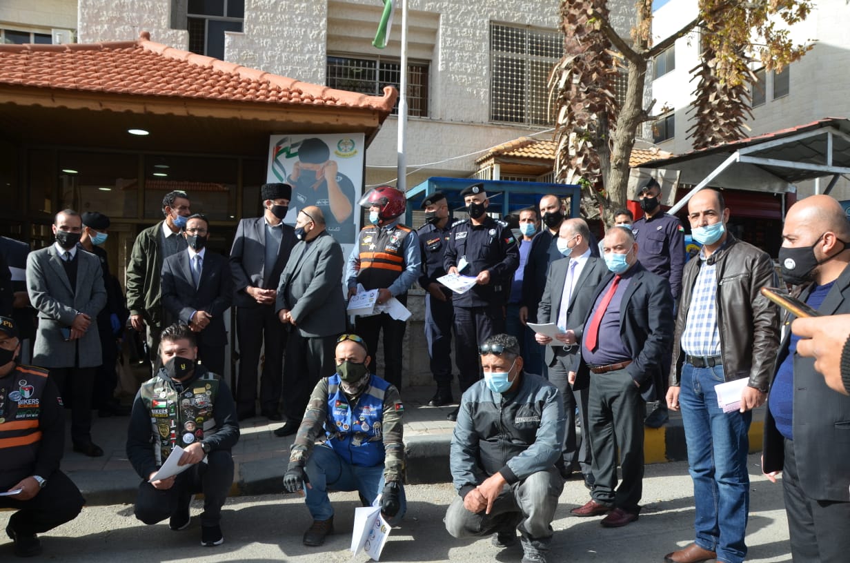 وقام العقيد الدعجة ومتصرف لواء وادي السير ورئيس محكمة غرب عمان ورئيس واعضاء المجلس الأمني المحلي لمركز امن البيادر والمتطوعين بتوزيع الكمامات والمعقمات والبروشورات التوعوية على المواطنين .