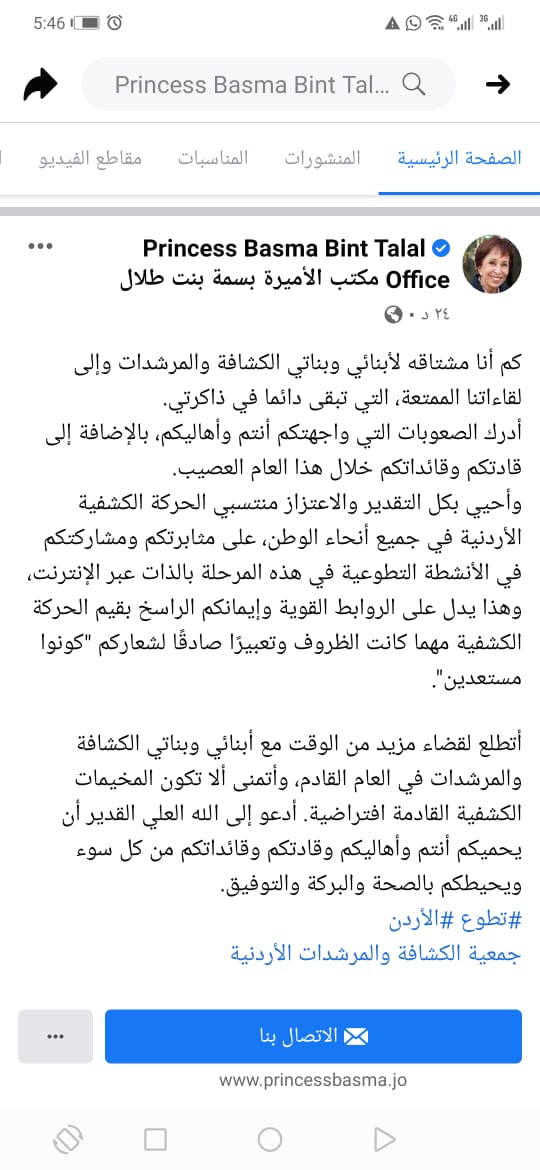 وتاليا نص رسالة سمو الأميرة بسمة للكشافة والمرشدات.