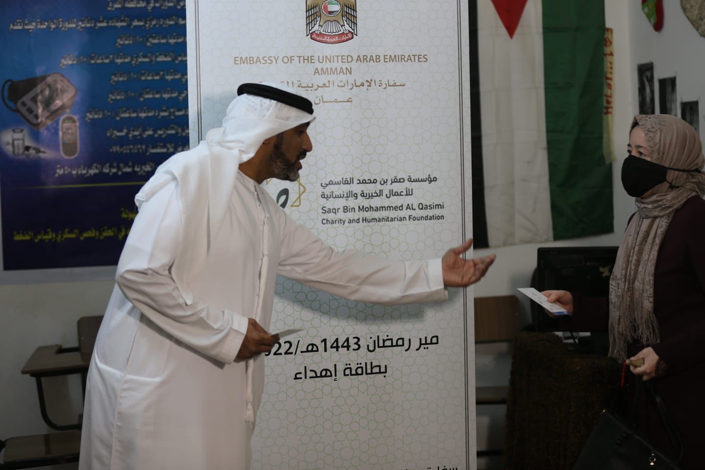وحضر السيد خالد النعيمي رئيس قسم الخدمات المساندة في السفارة، مكان تسليم الطرود والقسائم الشرائية الغذائية بمقر جمعية الخيرات في محافظة المفرق، وجرى تسليم المستفيدين بحضور عدد من المسؤولين ورساء الجمعيات والنشطاء في المجال الإنساني بالمحافظة.