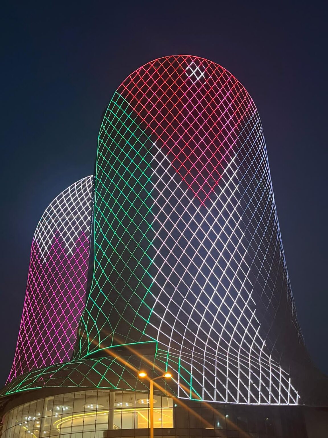 ومن المباني التي أضيئت بعلم الأردن ورفعت عليها صور الملك، مبنى فندق شيراتون الدوحة الذي يعتبر أيقونة أبراج ومبان الدوحة، حيث يعد من أعرقها وأقدمها، وهو يعد الفندق الرسمي للدولة، كما ظهرت صور العلم الأردني وصور الملك على مبنى الشعلة الشهير في الدوحة، وهو عبارة عن برج حديث شاهق الارتفاع، إضافة إلى عدد من أبراج مدينة لوسيل الذكية، التي تعتبر بمثابة العاصمة الإدارية الجديدة لقطر.